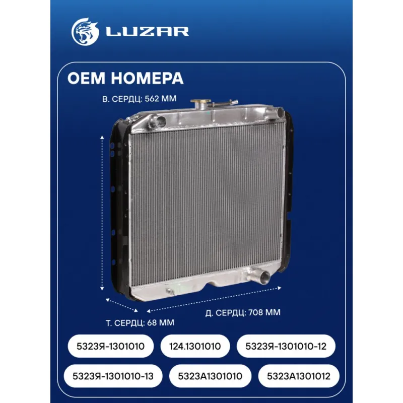 Радиатор охлаждения для автомобилей Урал 4320/5323 с двигателем ЯМЗ Характеристики: Артикул: LRc 12Y8 OEM номера: 5323Я-1301010, 124.1301010, 5323Я-1301010-12, 5323Я-1301010-13, 5323A1301010, 5323A1301012 Сопутствующий товар: Патрубки охлаждения (комплект): LPK 1215 Трансмиссия: MT Кондиционер: - Длина сердцевины, мм: 708 Высота сердцевины, мм: 562 Толщина сердцевины, мм: 68 Подходит для авто: Ural 4320, 5323 Для проверки применяемости отправьте VIN автомобиля через вкладку "Есть вопросы о товаре?" Комплектация: Радиатор охлаждения Паспорт изделия Гарантия: от 1 года.