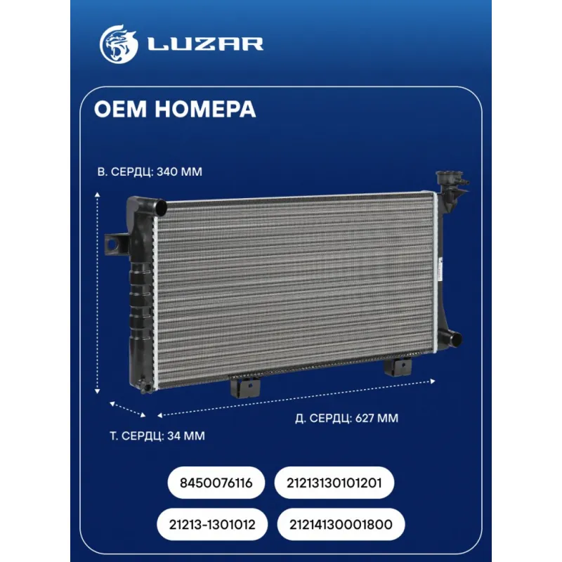 Радиатор охлаждения для автомобилей ВАЗ 21213 Нива (сборный) Характеристики: Артикул: LRc 01213 OEM номера: 21213-1301012, 21214130001800, 8450076116, 21213130101201 Материал сердцевины: алюминий Материал бачков: пластик Сопутствующий товар: Патрубки охлаждения (комплект): LPK 01213 Трансмиссия: MT Кондиционер: - Длина сердцевины, мм: 627 Высота сердцевины, мм: 340 Толщина сердцевины, мм: 34 Тип сердцевины: сборная Подходит для авто: ВАЗ 21213 VIS 2346 Для проверки применяемости отправьте VIN автомобиля через вкладку "Есть вопросы о товаре?" Комплектация: Радиатор охлаждения Паспорт изделия Гарантия: от 1 года.