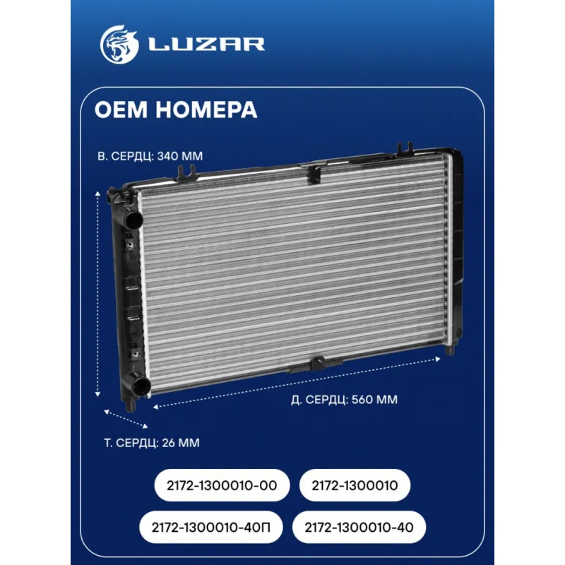 Радиатор охлаждения для автомобилей ВАЗ 2170-72 Приора А/С (тип Panasonic) (сборный) Характеристики: Артикул: LRc 01272b OEM номера: 2172-1300010-40П, 2172-1300010-40, 2172-1300010-00, 2172-1300010 Материал сердцевины: алюминий Материал бачков: пластик Сопутствующий товар: Радиаторы кондиционера (конденсеры): LRAC 01272 Сопутствующий товар: Крышки (пробки) радиатора: LL 0102 Сопутствующий товар: Крышки (пробки) расширительного бачка: LL 0108 Сопутствующий товар: Электровентиляторы охлаждения: LFc 01272 Сопутствующий товар: Патрубки охлаждения (комплект): LPK 0127; LPK 0110 Сопутствующий товар: Электровентиляторы кондиционера: LFAC 0118 Сопутствующий товар: Блоки охлаждения (радиатор + конденсор + вентилятор): LRK 01272 Сопутствующий товар:: LRc 0126 Трансмиссия: MT Кондиционер: +/- Длина сердцевины, мм: 560 Высота сердцевины, мм: 340 Толщина сердцевины, мм: 26 Тип сердцевины: сборная Аналог: LRc 0126 (паяная сердцевина) Подходит для авто: ВАЗ Priora (07-) Для проверки применяемости отправьте VIN автомобиля через вкладку "Есть вопросы о товаре?" Комплектация: Радиатор охлаждения Паспорт изделия Гарантия: от 1 года.