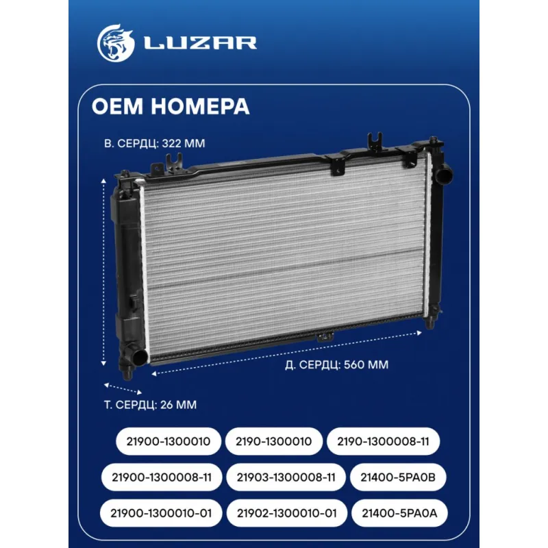 Радиатор охлаждения для автомобилей ВАЗ 2190 Гранта/Datsun on-Do (универсальный, сборный) Характеристики: Артикул: LRc 01900 OEM номера: 21900-1300010-01, 21902-1300010-01, 21900-1300008-11, 21903-1300008-11, 21900-1300010, 2190-1300010, 2190-1300008-11, 21400-5PA0A, 21400-5PA0B, 21400-5PA0H Трансмиссия: MT/AMT Кондиционер: +/- Длина сердцевины, мм: 560 Высота сердцевины, мм: 322 Толщина сердцевины, мм: 34 Тип сердцевины: сборная Материал сердцевины: алюминий Материал бачков: пластик Сопутствующий товар: Радиаторы кондиционера (конденсеры): LRAC 0190; LRAC 0194 Сопутствующий товар: Патрубки охлаждения (комплект): LPK 0190 Сопутствующий товар: Блоки охлаждения (радиатор + конденсор + вентилятор): LRK 0192; LRK 0194 Примечание: плоско-овальная трубка сердцевины Подходит для авто: Datsun on-DO (14-), mi-DO (15-) ВАЗ Granta (10-), Kalina II (13-) Для проверки применяемости отправьте VIN автомобиля через вкладку "Есть вопросы о товаре?" Комплектация: Радиатор охлаждения Паспорт изделия Гарантия: от 1 года.