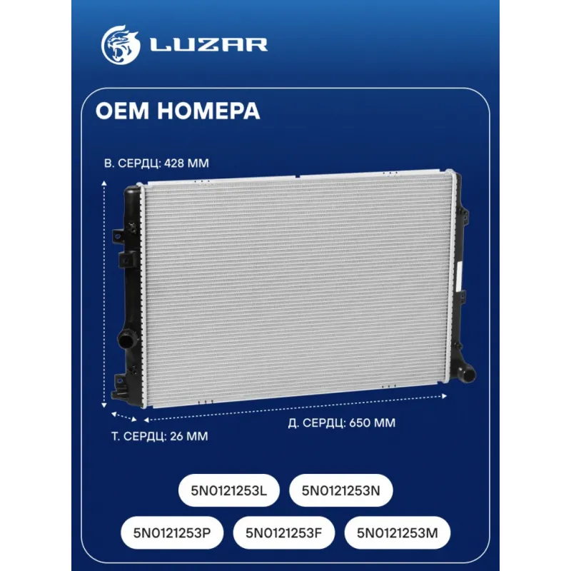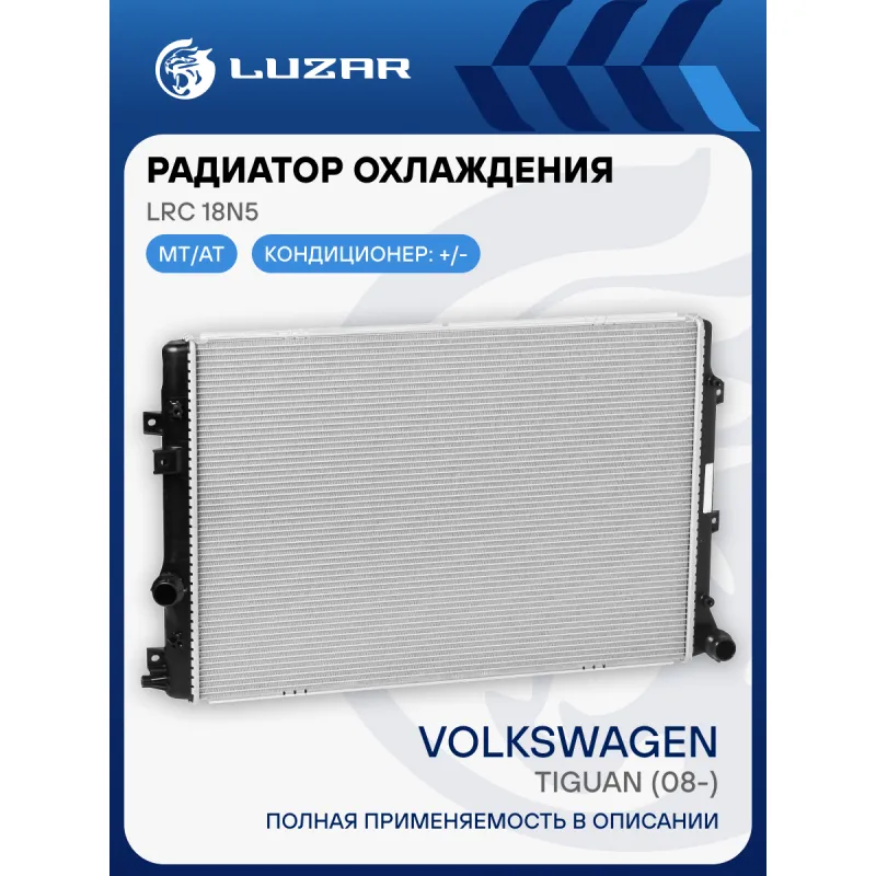 Радиатор охлаждения для автомобилей Volkswagen Tiguan (08-) Характеристики: Артикул: LRc 18N5 OEM номера: 5N0121253P, 5N0121253F, 5N0121253M, 5N0121253L, 5N0121253N Сопутствующий товар: Элементы для уплотнения соединений: LGS 0032 Трансмиссия: MT/AT Кондиционер: +/- Длина сердцевины, мм: 650 Высота сердцевины, мм: 428 Толщина сердцевины, мм: 26 Тип сердцевины: паяная Материал сердцевины: алюминий Материал бачков: пластик Сопутствующий товар: Радиаторы кондиционера (конденсеры): LRAC 18N5 Подходит для авто: Volkswagen Tiguan (08-), Sharan (10-) Для проверки применяемости отправьте VIN автомобиля через вкладку "Есть вопросы о товаре?" Комплектация: Радиатор охлаждения Паспорт изделия Гарантия: от 1 года.