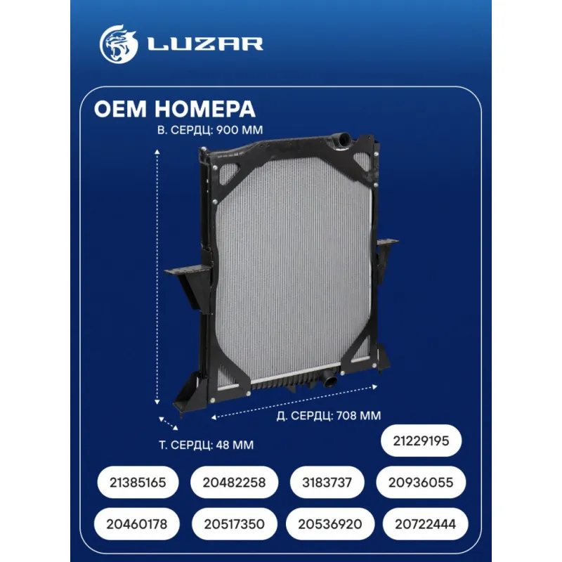 Радиатор охлаждения для автомобилей Volvo Trucks FH (93-)/FM (98-)/FM (01-)/FM (05-)/FMX (10-) (с рамкой) LRc 1055 LUZAR
