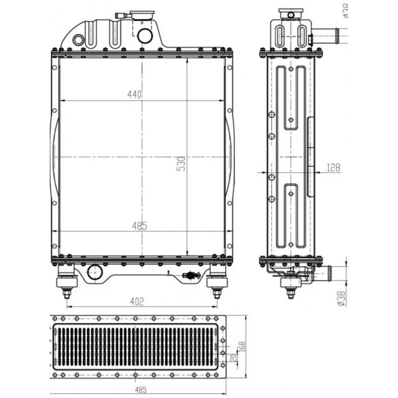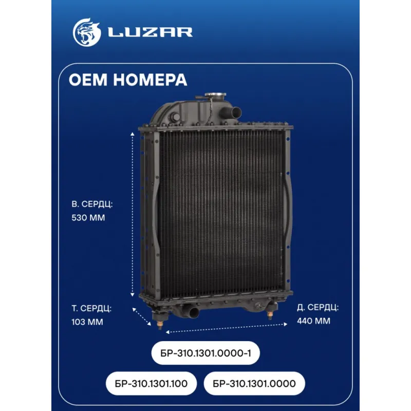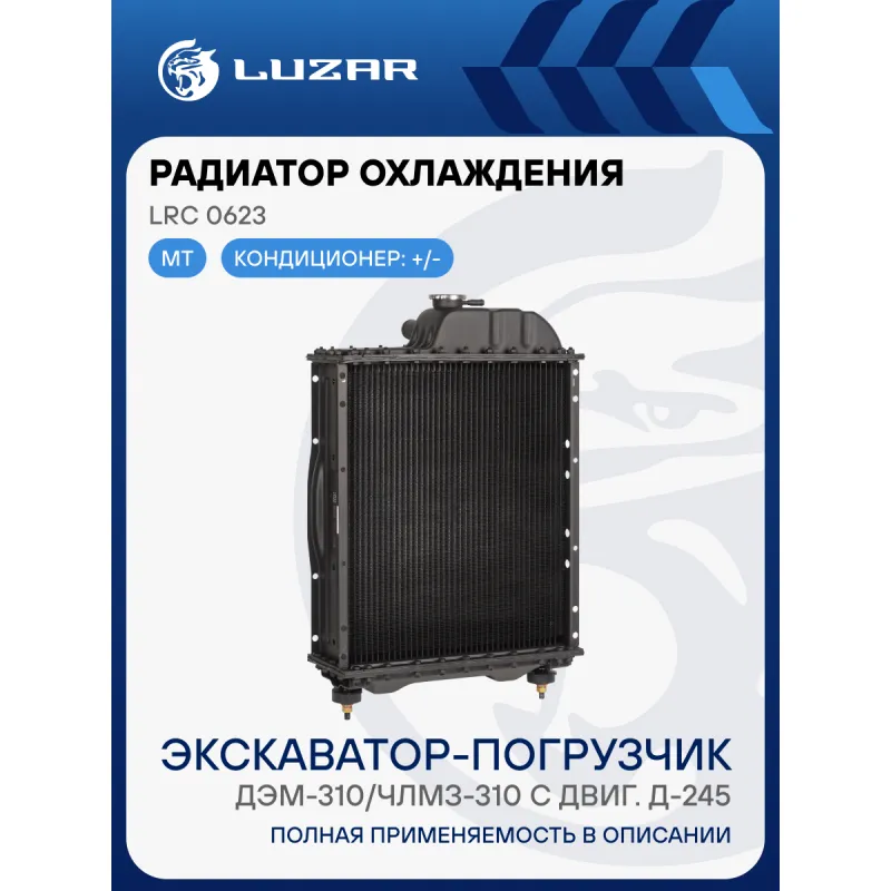 Радиатор охлаждения для экскаваторов-погрузчиков ДЭМ-310/ЧЛМЗ-310 с двиг. Д-245 (алюм., 5-ти ряд.) Характеристики: Артикул: LRc 0623 OEM номера: БР-310.1301.100 , БР-310.1301.0000, БР-310.1301.0000-1 Трансмиссия: MT Кондиционер: +/- Длина сердцевины, мм: 440 Высота сердцевины, мм: 530 Толщина сердцевины, мм: 103 Тип сердцевины: паяная, 5-ти рядная Материал сердцевины: алюминий Материал бачков: сталь Диаметр патрубков: 38мм Примечание: ширина трубки сердцевины 18мм Комплектация: Радиатор охлаждения - 1 шт Паспорт изделия - 1 шт Гарантия: от 1 года.