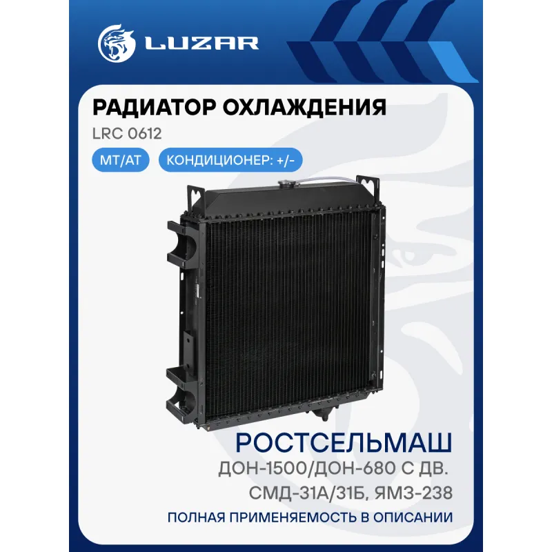 Радиатор охлаждения для комбайнов РСМ Дон-1500/Дон-680 с дв. СМД-31А/31Б, ЯМЗ-238 Характеристики: Артикул: LRc 0612 OEM номера: 250У.13.010-4-02, 250-1301011-4, 250y13010-4 Трансмиссия: MT/AT Кондиционер: +/- Длина сердцевины, мм: 705 Высота сердцевины, мм: 761 Толщина сердцевины, мм: 136 Тип сердцевины: паяная, 6-ти рядная Материал сердцевины: алюминий Материал бачков: сталь Диаметр патрубков: верх - 2*40мм/низ- 60мм Подходит для авто: Ростсельмаш Дон-1500, Дон-680 Для проверки применяемости отправьте VIN автомобиля через вкладку "Есть вопросы о товаре?" Комплектация: Радиатор охлаждения Паспорт изделия Гарантия: от 1 года.