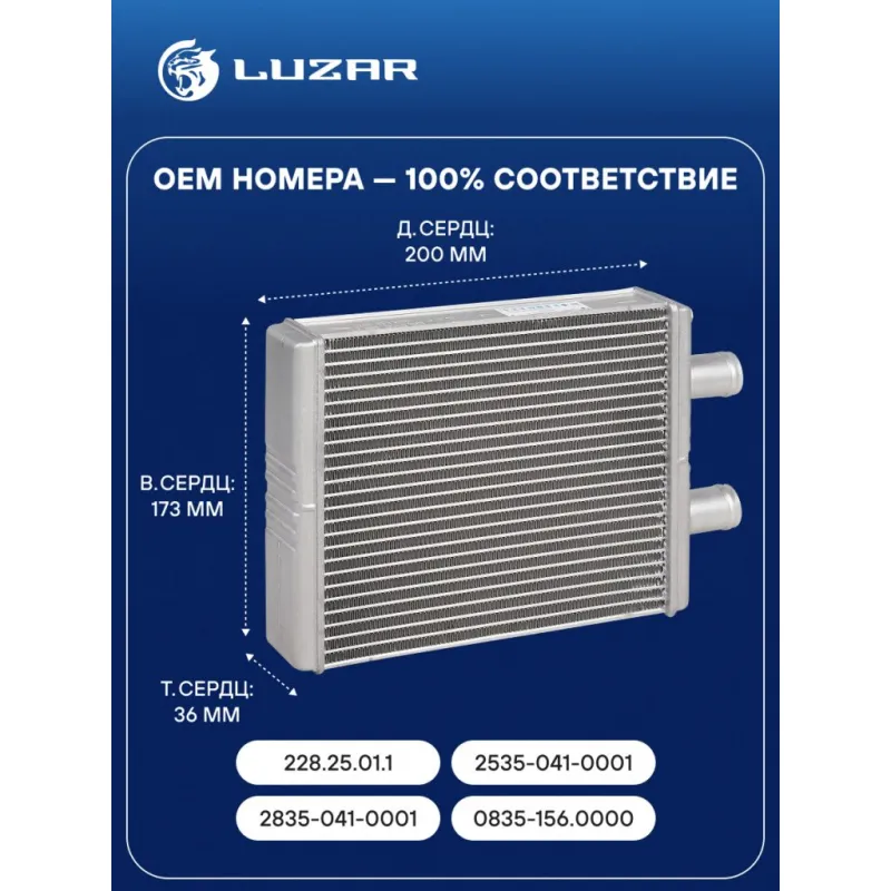 Радиатор отоп. для автобусов ЛиАЗ/НефАЗ/ПАЗ/КАВЗ (отопитель дополнительный, Белробот) (с клапаном) Характеристики: Артикул: LRh 0350 OEM номера: 228.25.01.1, 2535-041-0001, 2835-041-0001, 0835-156.0000 Тип конструкции: с клапаном Трансмиссия: MT Кондиционер: +/- Материал бачков: алюминий Тип сердцевины: паяная Длина сердцевины, мм: 200 Толщина сердцевины, мм: 36 Высота сердцевины, мм: 173 Материал сердцевины: алюминий Применяемость: входит в состав блока отопителя салона А1-562 Белробот Подходит для авто: KAVZ 4238 (06-), 4270 (16-), 4235 (08-) ПАЗ 3205, 3206, 3237, 4230, 4234 ЛиАЗ 5256, 5292, 5293 NefAZ 5299 Volgabus 52701 RoAZ 5236 Bogdan A144, A145 Для проверки применяемости отправьте VIN автомобиля через вкладку "Есть вопросы о товаре?" Комплектация: Радиатор отопителя - 1 шт Паспорт изделия - 1 шт Гарантия: от 1 года.