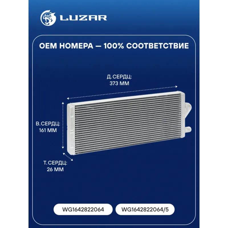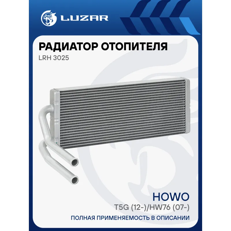 Радиатор отопителя для а/м Howo T5G (12-)/HW76 (07-) Характеристики: Артикул: LRh 3025 OEM номера: WG1642822064/5, WG1642822064 Тип конструкции: с трубками в сборе Трансмиссия: MT/AT Кондиционер: +/- Материал бачков: алюминий Тип сердцевины: паяная Сопутствующий товар: Электровентиляторы отопителя: LFh 3027 Длина сердцевины, мм: 373 Толщина сердцевины, мм: 26 Высота сердцевины, мм: 161 Материал сердцевины: алюминий Комплектация: Радиатор отопителя с трубками в сборе - 1 шт Паспорт изделия - 1 шт Гарантия: от 1 года.