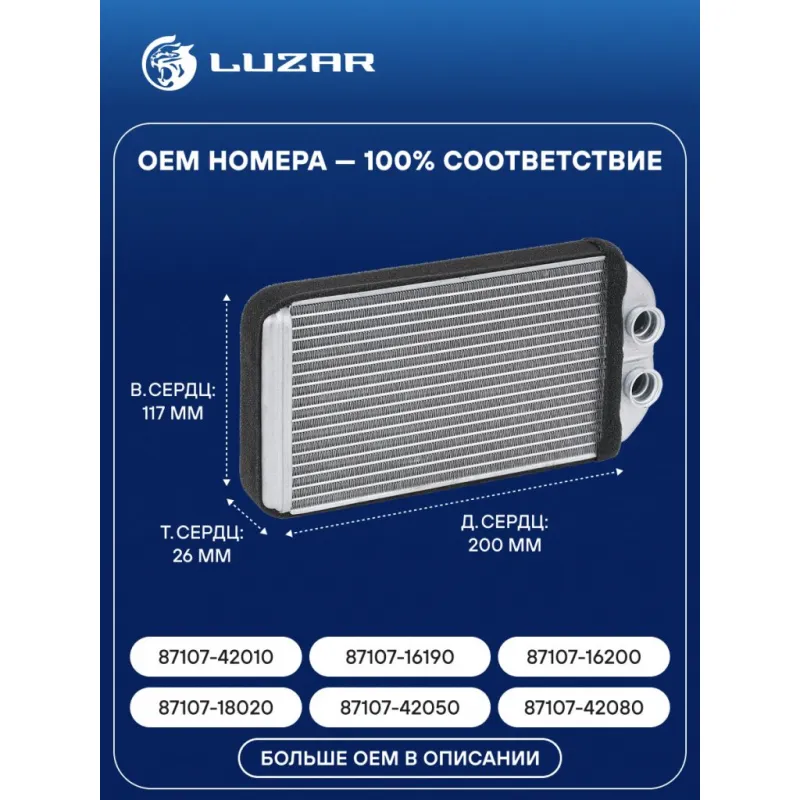 Радиатор отопителя для а/м Toyota RAV4 (94-) 2.0i Характеристики: Артикул: LRh 1948 OEM номера: 87107-42010, 87107-16190, 87107-16200, 87107-18020, 87107-42050, 87107-42080, 87107-42020, 87107-10350 Трансмиссия: MT/AT Кондиционер: +/- Материал бачков: алюминий Тип сердцевины: паяная Длина сердцевины, мм: 200 Толщина сердцевины, мм: 26 Высота сердцевины, мм: 117 Материал сердцевины: алюминий Подходит для авто: Toyota RAV 4 (94-) Для проверки применяемости отправьте VIN автомобиля через вкладку "Есть вопросы о товаре?" Комплектация: Радиатор отопителя Паспорт изделия Гарантия: от 1 года.