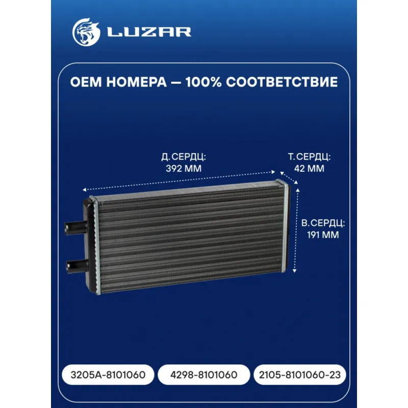 Радиатор отопителя для автобусов ЛиАЗ 5256, НефАЗ 5299, ПАЗ 3205, 4230, Волжанин 52701 (длинный, 25мм) Характеристики: Артикул: LRh 0398 OEM номера: 4298-8101060, 2105-8101060-23, 3205А-8101060 , 3205A-8101060 Трансмиссия: MT/AT Кондиционер: +/- Материал сердцевины: алюминий Материал бачков: пластик Тип сердцевины: сборная Длина сердцевины, мм: 392 Толщина сердцевины, мм: 42 Высота сердцевины, мм: 191 Подходит для авто: ПАЗ 3205, 3206, 3237, 4230, 4234 ЛиАЗ 5256, 5292, 5293 NefAZ 5299 Volgabus 52701 RoAZ 5236 Bogdan A144, A145 Для проверки применяемости отправьте VIN автомобиля через вкладку "Есть вопросы о товаре?" Комплектация: Радиатор отопителя Паспорт изделия Гарантия: от 1 года.