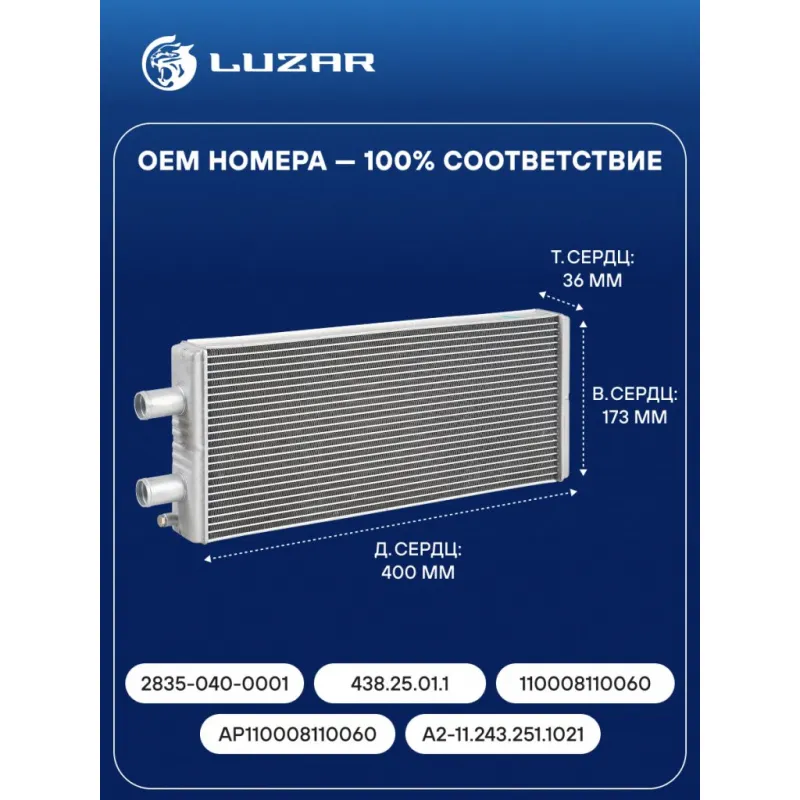 Радиатор отопителя для автобусов ЛиАЗ/НефАЗ/ПАЗ/КАВЗ (отопитель фронтальный, тип Белробот) (с клапаном) Характеристики: Артикул: LRh 0330 OEM номера: 110008110060, А2-11.243.251.1021, 2835-040-0001, 428.25.01.1, AP110008110060 Трансмиссия: MT Кондиционер: +/- Материал сердцевины: алюминий Материал бачков: алюминий Тип сердцевины: паяная Длина сердцевины, мм: 400 Толщина сердцевины, мм: 36 Высота сердцевины, мм: 173 Применяемость: входит в состав блока фронтального отопителя А2-501 Белробот Подходит для авто: KAVZ 4238 (06-), 4270 (16-), 4235 (08-) ПАЗ 3205, 3206, 3237, 4230, 4234 ЛиАЗ 5256, 5292, 5293 NefAZ 5299 Volgabus 52701 RoAZ 5236 Bogdan A144, A145 Для проверки применяемости отправьте VIN автомобиля через вкладку "Есть вопросы о товаре?" Комплектация: Радиатор отопителя - 1 шт Паспорт изделия - 1 шт Гарантия: от 1 года.
