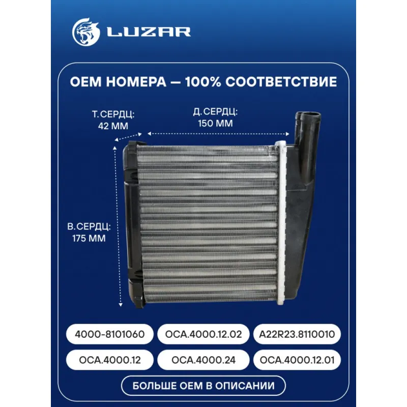Радиатор отопителя для автомобилей ГАЗель-Бизнес/ГАЗель-Next (салонный 4кВт) Характеристики: Артикул: LRh 03024 OEM номера: 4000-8101060, АР.4000.8110060, А22R23.8110010, ОСА.4000.12, ОСА.4000.24, ОСА.4000.12.01, ОСА.4000.12.02, AP.4000.8110060, A22R23.8110010, OCA.4000.12, OCA.4000.24, OCA.4000.12.01, OCA.4000.12.02, 4000-00-8110060-000 Трансмиссия: MT Кондиционер: +/- Материал сердцевины: алюминий Материал бачков: пластик Тип сердцевины: сборная Длина сердцевины, мм: 150 Толщина сердцевины, мм: 42 Высота сердцевины, мм: 175 Подходит для авто: ГАЗ 33027, 33027, Gazelle-Business, Gazelle-Business, Gazelle-Business, 33025, 33025, Gazelle-Next (13-) Для проверки применяемости отправьте VIN автомобиля через вкладку "Есть вопросы о товаре?" Комплектация: Радиатор отопителя Паспорт изделия Гарантия: от 1 года.