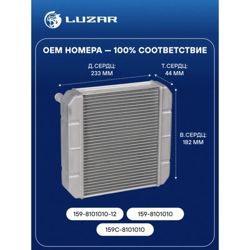 Радиатор отопителя для автомобилей ГАЗ/ПАЗ/КАМАЗ/МТЗ/НЕФАЗ (для универс. отопителя ЛРЗ) Характеристики: Артикул: LRh 0317 OEM номера: 159-8101010-12, 159-8101010, 159C-8101010, 159С-8101010 Трансмиссия: MT Кондиционер: +/- Материал сердцевины: алюминий Материал бачков: алюминий Тип сердцевины: паяная Длина сердцевины, мм: 233 Толщина сердцевины, мм: 44 Высота сердцевины, мм: 182 Применение: для отопителя ЛРЗ 159-8101010 Подходит для авто: ГАЗ 3302, 3302, 2752, 2752, 2705, 2705, 3221, 3221, 3302, 3302, 3302, 2752, 2752, 2752, 2752, 2705, 2705, 2705, 2705, 3221, 3221, 3221 ПАЗ 3205, 3206 NefAZ 5297, 5299 Для проверки применяемости отправьте VIN автомобиля через вкладку "Есть вопросы о товаре?" Комплектация: Радиатор отопителя Паспорт изделия Гарантия: от 1 года.