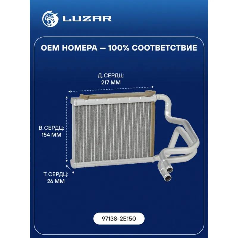 Радиатор отопителя для автомобилей Tucson/Sportage (06-) (тип Halla) Характеристики: Артикул: LRh 082E OEM номера: 97138-2E150 Материал бачков: алюминий Тип сердцевины: паяная Трансмиссия: MT/AT Кондиционер: +/- Длина сердцевины, мм: 217 Высота сердцевины, мм: 154 Толщина сердцевины, мм: 26 Материал сердцевины: алюминий Подходит для авто: Hyundai Tucson I (04-) Kia Sportage II (04-) Для проверки применяемости отправьте VIN автомобиля через вкладку "Есть вопросы о товаре?" Комплектация: Радиатор отопителя Паспорт изделия Гарантия: от 1 года.