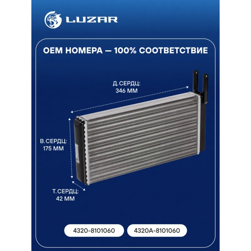 Радиатор отопителя для автомобилей Урал 5557/4320 Характеристики: Артикул: LRh 1208 OEM номера: 4320-8101060, 4320А-8101060 Материал бачков: пластик Тип сердцевины: сборная Трансмиссия: MT Кондиционер: +/- Длина сердцевины, мм: 346 Высота сердцевины, мм: 175 Толщина сердцевины, мм: 42 Материал сердцевины: алюминий Подходит для авто: Ural 5557, 4320 Для проверки применяемости отправьте VIN автомобиля через вкладку "Есть вопросы о товаре?" Комплектация: Радиатор отопителя Паспорт изделия Гарантия: от 1 года.
