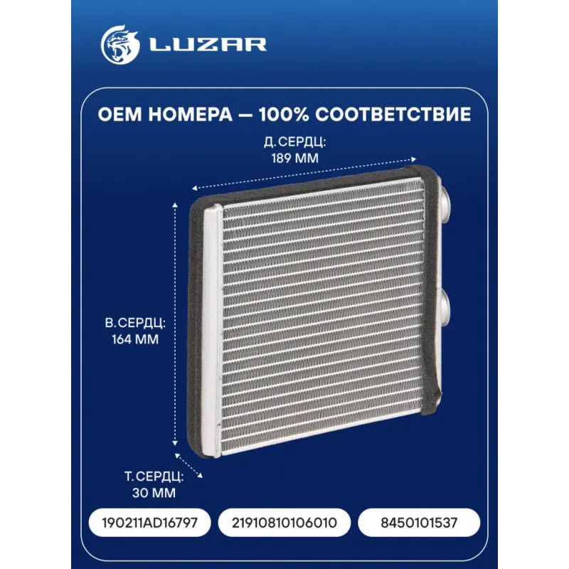 Радиатор отопителя для автомобилей ВАЗ 2190 Гранта FL (18-) Характеристики: Артикул: LRh 0195 OEM номера: 190211AD16797, 21910810106010, 8450101537 Тип конструкции: со съемными трубками Трансмиссия: MT/AT Кондиционер: +/- Комплектация: съемные трубки, фиксаторы, уплотнительные кольца Материал сердцевины: алюминий Материал бачков: алюминий Тип сердцевины: паяная Сопутствующий товар: Электровентиляторы отопителя: LFh 01270 Сопутствующий товар: Патрубки отопления (комплект): LPKh 0195 Сопутствующий товар: Элементы для уплотнения соединений: LGS 0003 Длина сердцевины, мм: 189 Толщина сердцевины, мм: 30 Высота сердцевины, мм: 164 Подходит для авто: ВАЗ Granta FL (18-), Granta (10-) Datsun mi-DO (15-), on-DO (14-) Для проверки применяемости отправьте VIN автомобиля через вкладку "Есть вопросы о товаре?" Комплектация: Радиатор отопителя Паспорт изделия алюминиевые трубки - 2 шт Хомуты - 2 шт Уплотнительные кольца - 2 шт Гарантия: от 1 года.