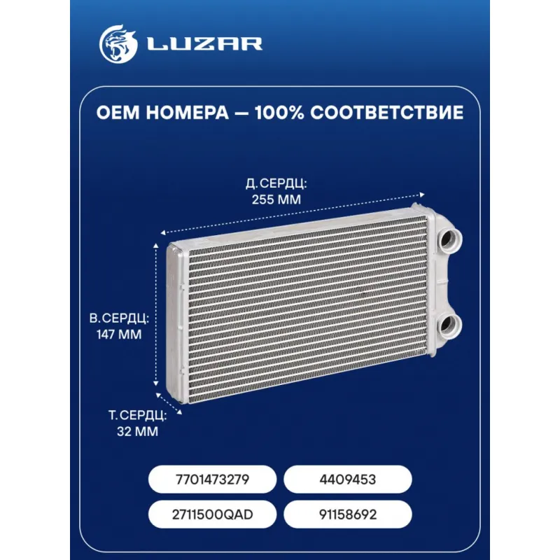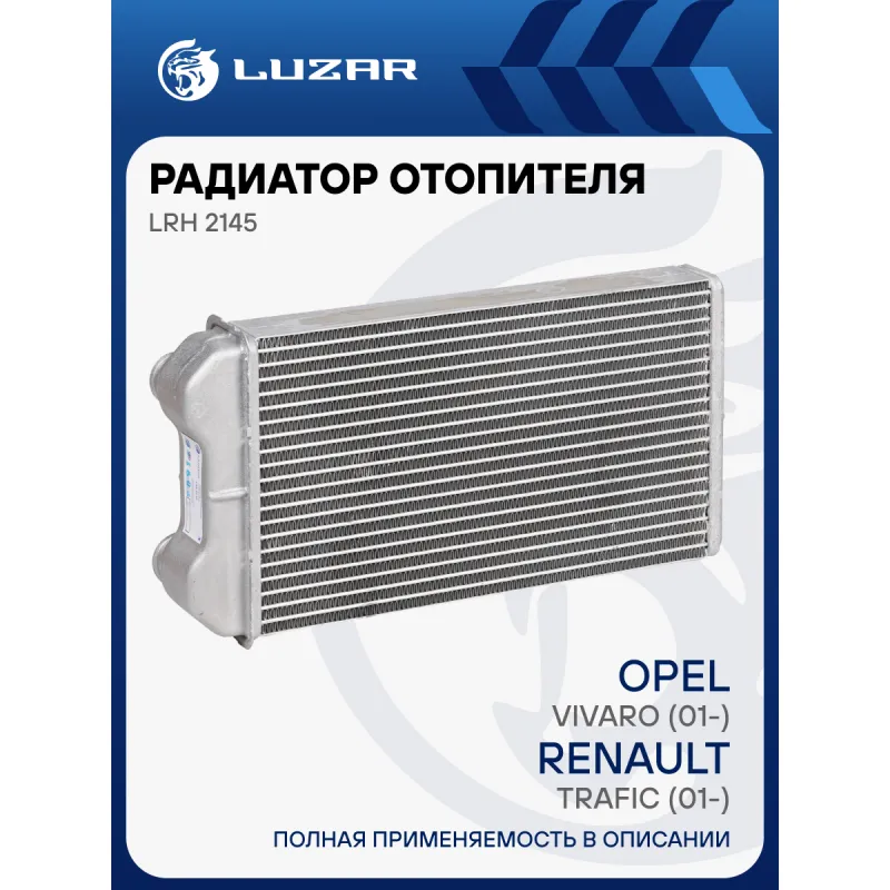 Радиатор отопителя для автомобилей Vivaro (01-)/Renault Trafic (01-) Характеристики: Артикул: LRh 2145 OEM номера: 7701473279, 4409453, 2711500QAD, 91158692 Трансмиссия: MT/AT Кондиционер: +/- Длина сердцевины, мм: 255 Высота сердцевины, мм: 147 Толщина сердцевины, мм: 32 Тип сердцевины: паяная Материал сердцевины: алюминий Подходит для авто: Opel Vivaro (01-), Vivaro (01-) Renault Trafic II (01-), Trafic II (01-) Nissan Primastar (01-), Primastar (01-) Для проверки применяемости отправьте VIN автомобиля через вкладку "Есть вопросы о товаре?" Комплектация: Радиатор отопителя Паспорт изделия Гарантия: от 1 года.