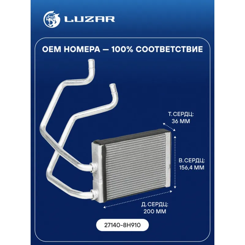 Радиатор отопителя для автомобилей X-Trail (T30) (00-) Характеристики: Артикул: LRh 1408 OEM номера: 27140-8H910 Трансмиссия: MT/AT Кондиционер: +/- Длина сердцевины, мм: 200 Высота сердцевины, мм: 156.4 Толщина сердцевины, мм: 36 Тип сердцевины: паяная Материал сердцевины: алюминий Тип конструкции: с трубками в сборе Подходит для авто: Nissan X-Trail T30 (01-), X-Trail T30 (01-) Для проверки применяемости отправьте VIN автомобиля через вкладку "Есть вопросы о товаре?" Комплектация: Радиатор отопителя Паспорт изделия Гарантия: от 1 года.