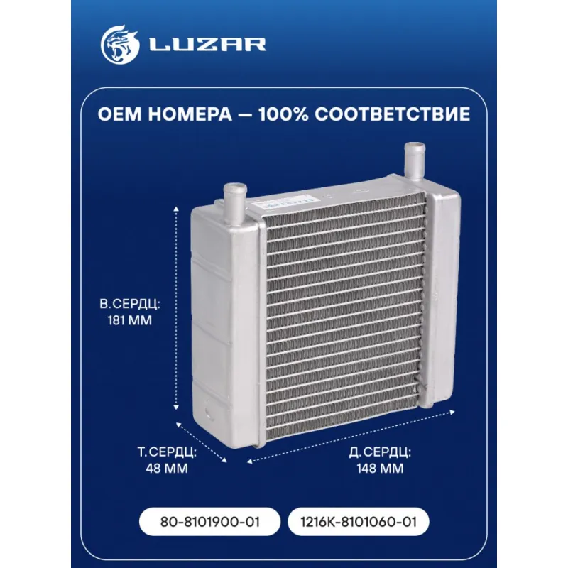 Радиатор отопителя для тракторов МТЗ-80 (алюминиевый, трубки в одну сторону) Характеристики: Артикул: LRh 0681 OEM номера: 80-8101900-01, 1216К-8101060-01 Трансмиссия: MT Кондиционер: - Материал сердцевины: алюминий Материал бачков: алюминий Тип сердцевины: паяная Длина сердцевины, мм: 148 Толщина сердцевины, мм: 48 Высота сердцевины, мм: 181 Подходит для авто: MTZ 80, 82 Для проверки применяемости отправьте VIN автомобиля через вкладку "Есть вопросы о товаре?" Комплектация: Радиатор отопителя Паспорт изделия Гарантия: от 1 года.