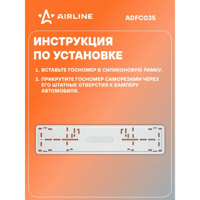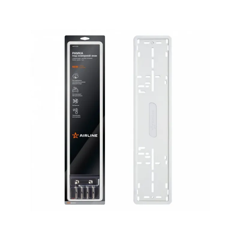 Рамка под номерной знак PRO, силиконовая с металл.основой, 1 шт., крепл., белая Описание: Рамка для номера автомобиля AIRLINE ADFC035 предназначены для крепления гос. номеров к кузову автомобиля. Все размеры подходят к номерам изготовленных по ГОСТу Р 50577-2018. Рамки произведены морозостойкого силикона и устойчивы к перепадам температур. Рамки оснащены металлической основой, которая дает возможность крепиться в штатные места автомобиля при помощи винтов или саморезов. Для большей надежности есть возможность дополнительно прикрепить номер к рамке винтами под шестигранник. Весь необходимый крепеж и ключ для установки находится в комплекте. Особенности номерной рамки: *Размер стандартный, по ГОСТ. *Тип рамки силиконовая. *Морозостойкие материалы - силикон, металл; *Не бренчит; *Не повреждает ЛКП автомобиля; *Российско-европейский размер; *Соответствует требованиям ГИБДД; Способ крепления: 1. Вставьте госномер в силиконовую рамку. 2. Прикрутите госномер саморезами через его штатные отверстия к бамперу автомобиля. Универсальная рамка для автомобиля подойдет для различных марок и моделей авто Audi, BMW, Chery, Chevrolet, Citroen, Dacia, Daewoo, Datsun, FAW, Fiat, Ford, Geely, Honda, Hyundai, Infiniti, Jaguar, Kia, LADA (ВАЗ), Land Rover, Lexus, Mazda, Mercedes-Benz, Mitsubishi, Nissan, Opel, Peugeot, Porsche, Renault, Rover, Saab, SEAT, Skoda, Smart, Москвич, УАЗ и другие. Товар официального производителя AIRLINE. Сделано в России. Автотовар для внешнего тюнинга, который станет отличным подарком автомобилисту, мужчине и женщине, автолюбителю, папе, отцу, мужу, парню и другу. Характеристики: Артикул: ADFC035 Размер: стандартный, по ГОСТ Тип рамки: силиконовая Длина, мм: 527 Ширина, мм: 132 Толщина, мм: 10 Надпись: нет Комплектация: Блистер - 1 шт Ключ -отвертка - 1 шт Рамка силикон - 1 шт Основание(пластина) - 1 шт Винт М5 (Длинные) - 4 шт Саморезы 16мм - 4 шт Винт М5 (Короткие) - 2 шт Гарантия: от 1 года.