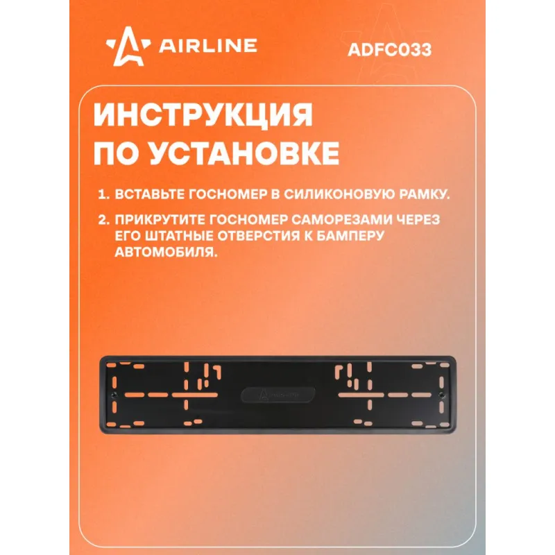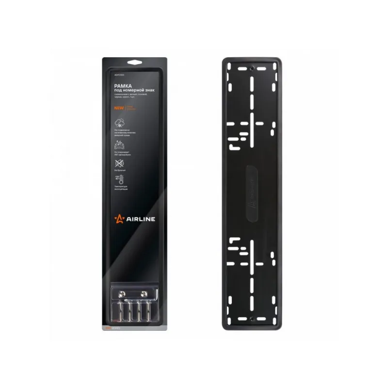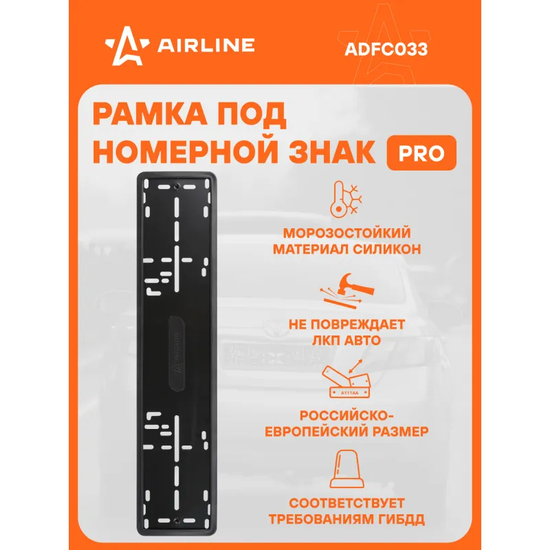 Рамка под номерной знак PRO, силиконовая с металл.основой, 1 шт., крепл., черная Описание: Рамка для номера автомобиля AIRLINE ADFC033 предназначены для крепления гос. номеров к кузову автомобиля. Все размеры подходят к номерам изготовленных по ГОСТу Р 50577-2018. Рамки произведены морозостойкого силикона и устойчивы к перепадам температур. Рамки оснащены металлической основой, которая дает возможность крепиться в штатные места автомобиля при помощи винтов или саморезов. Для большей надежности есть возможность дополнительно прикрепить номер к рамке винтами под шестигранник. Весь необходимый крепеж и ключ для установки находится в комплекте. Особенности номерной рамки: *Размер стандартный, по ГОСТ. *Тип рамки силиконовая. *Морозостойкие материалы - силикон, металл; *Не бренчит; *Не повреждает ЛКП автомобиля; *Российско-европейский размер; *Соответствует требованиям ГИБДД; Способ крепления: 1. Вставьте госномер в силиконовую рамку. 2. Прикрутите госномер саморезами через его штатные отверстия к бамперу автомобиля. Универсальная рамка для автомобиля подойдет для различных марок и моделей авто Audi, BMW, Chery, Chevrolet, Citroen, Dacia, Daewoo, Datsun, FAW, Fiat, Ford, Geely, Honda, Hyundai, Infiniti, Jaguar, Kia, LADA (ВАЗ), Land Rover, Lexus, Mazda, Mercedes-Benz, Mitsubishi, Nissan, Opel, Peugeot, Porsche, Renault, Rover, Saab, SEAT, Skoda, Smart, Москвич, УАЗ и другие. Товар официального производителя AIRLINE. Сделано в России. Автотовар для внешнего тюнинга, который станет отличным подарком автомобилисту, мужчине и женщине, автолюбителю, папе, отцу, мужу, парню и другу. Характеристики: Артикул: ADFC033 Размер: стандартный, по ГОСТ Тип рамки: силиконовая Длина, мм: 527 Ширина, мм: 132 Толщина, мм: 10 Надпись: нет Комплектация: Блистер - 1 шт Ключ-отвертка - 1 шт Рамка силикон - 1 шт Основание(пластина) - 1 шт Винт М5 (Длинные) - 4 шт Саморезы 16мм - 4 шт Гарантия: от 1 года.