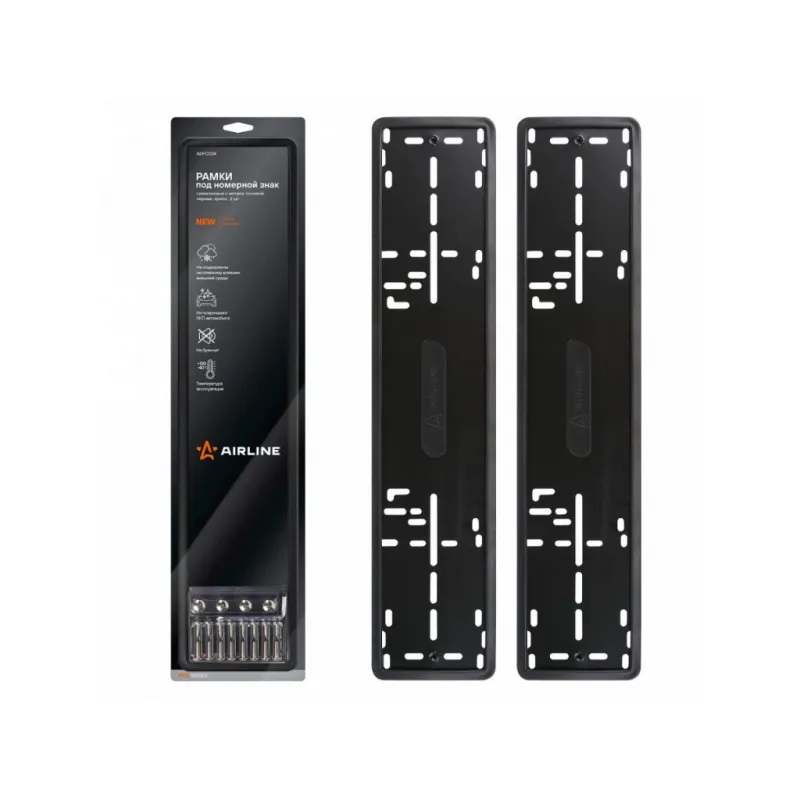 Рамки под номерной знак PRO, силиконовые с металл.основой, 2 шт., крепл., черные Описание: Рамки для номера автомобиля PRO AIRLINE ADFC034, комплект 2 шт, предназначены для крепления гос. номеров к кузову автомобиля. Все размеры подходят к номерам изготовленных по ГОСТу Р 50577-2018. Рамки оснащены металлической основой, которая дает возможность крепиться в штатные места автомобиля при помощи винтов или саморезов. Для большей надежности есть возможность дополнительно прикрепить номер к рамке винтами под шестигранник. Весь необходимый крепеж и ключ для установки находится в комплекте. Особенности номерной рамки: *Размер стандартный, по ГОСТ. *Тип рамки силиконовая. *Морозостойкие материалы - силикон, металл; *Не бренчит; *Не повреждает ЛКП автомобиля; *Российско-европейский размер; *Соответствует требованиям ГИБДД; Способ крепления: 1. Вставьте госномер в силиконовую рамку. 2. Прикрутите госномер саморезами через его штатные отверстия к бамперу автомобиля. Универсальная рамка для автомобиля подойдет для различных марок и моделей авто Audi, BMW, Chery, Chevrolet, Citroen, Dacia, Daewoo, Datsun, FAW, Fiat, Ford, Geely, Honda, Hyundai, Infiniti, Jaguar, Kia, LADA (ВАЗ), Land Rover, Lexus, Mazda, Mercedes-Benz, Mitsubishi, Nissan, Opel, Peugeot, Porsche, Renault, Rover, Saab, SEAT, Skoda, Smart, Москвич, УАЗ и другие. Товар официального производителя AIRLINE. Сделано в России. Автотовар для внешнего тюнинга, который станет отличным подарком автомобилисту, мужчине и женщине, автолюбителю, папе, отцу, мужу, парню и другу. Характеристики: Артикул: ADFC034 Размер: стандартный, по ГОСТ Тип рамки: силиконовая Длина, мм: 527 Ширина, мм: 132 Толщина, мм: 10 Надпись: нет Комплектация: Блистер - 1 шт Ключ-отвертка - 1 шт Винт М5 (Длинные) - 8 шт Рамка силикон - 2 шт Основание(пластина) - 2 шт Саморезы 16мм - 8 шт Винт М5 (Короткие) - 4 шт Гарантия: от 1 года.