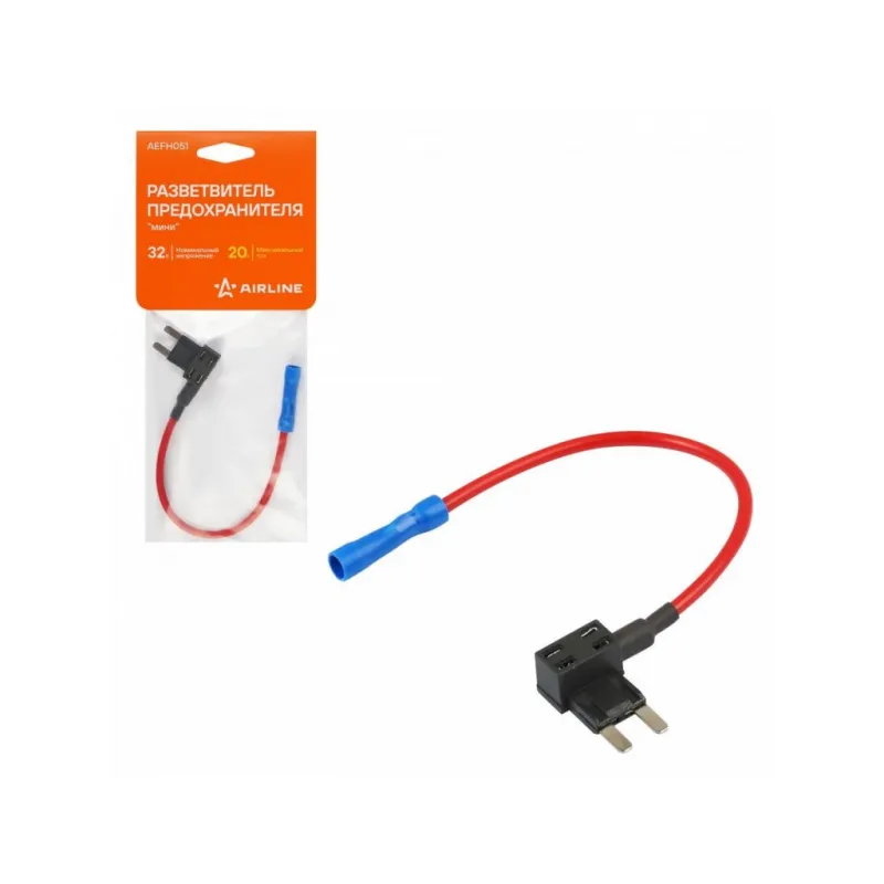 Разветвитель предохранителя "мини" Описание: Разветвитель предохранителя AIRLINE - это простой и безопасный способ подключить дополнительные электрические устройства к бортовой сети автомобиля. Позволяет произвести подключение без нарушения целостности штатной проводки. Разветвитель делает процесс установки новых устройств более простым и удобным. Вместо того чтобы искать подходящее место в электрической системе автомобиля и прокладывать новые провода, можно просто подключить устройство через разветвитель предохранителя.Разветвитель предохранителя AIRLINE обеспечивает надежную защиту дополнительных устройств от перегрузок и коротких замыканий. Каждый дополнительный выход разветвителя имеет собственный разъём для предохранителя, который защищает подключенные устройства и саму электрическую систему автомобиля. Используйте разветвитель с предохранителями "мини" AIRLINE. Характеристики: Артикул: AEFH051 Номинальное напряжение, В: 32 Максимальный ток, А: 20 Комплектация: Разветвитель - 1 шт Упаковка - 1 шт Гарантия: от 1 года.