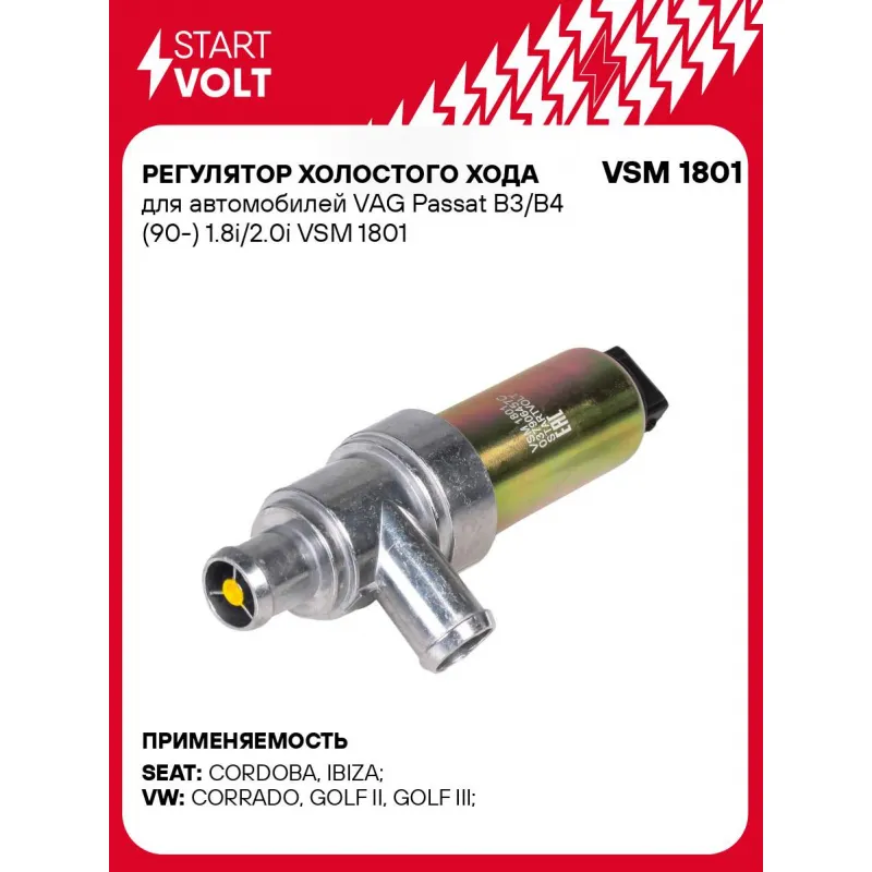 Регулятор холостого хода для автомобилей VAG Passat B3/B4 (90-) 1.8i/2.0i Характеристики: Артикул: VSM 1801 OEM номера: 037 906 457 C, 408-202-011-002G, 408-202-011-002Z, 408-202-011-002 Номинальное напряжение, В: 12 Количество на автомобиль: 1 Комплектация: Регулятор холостого хода - 1 шт Паспорт изделия/гарантийный талон Гарантия: от 1 года.