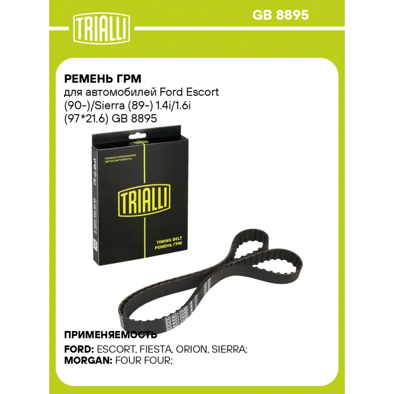Ремень ГРМ для автомобилей Ford Escort (90-)/Sierra (89-) 1.4i/1.6i (97*21.6) Характеристики: Артикул: GB 8895 OEM номера: 91SM6268AAA, 91SM6268AA, 6830821, 6711044 Материал: Полихлоропрен (CR) Особенности конструкции:: 97MR21.6 Ширина, мм: 21,6 Количество ребер: 97 Длина, мм.: 924 Гарантийный срок: 2 года/60 000 км. Сопутствующ... Читать полностью →