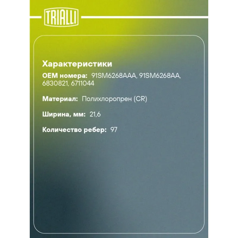 | Особенности конструкции: | 97MR21.6 |
