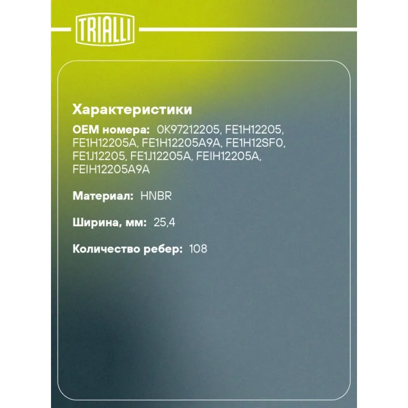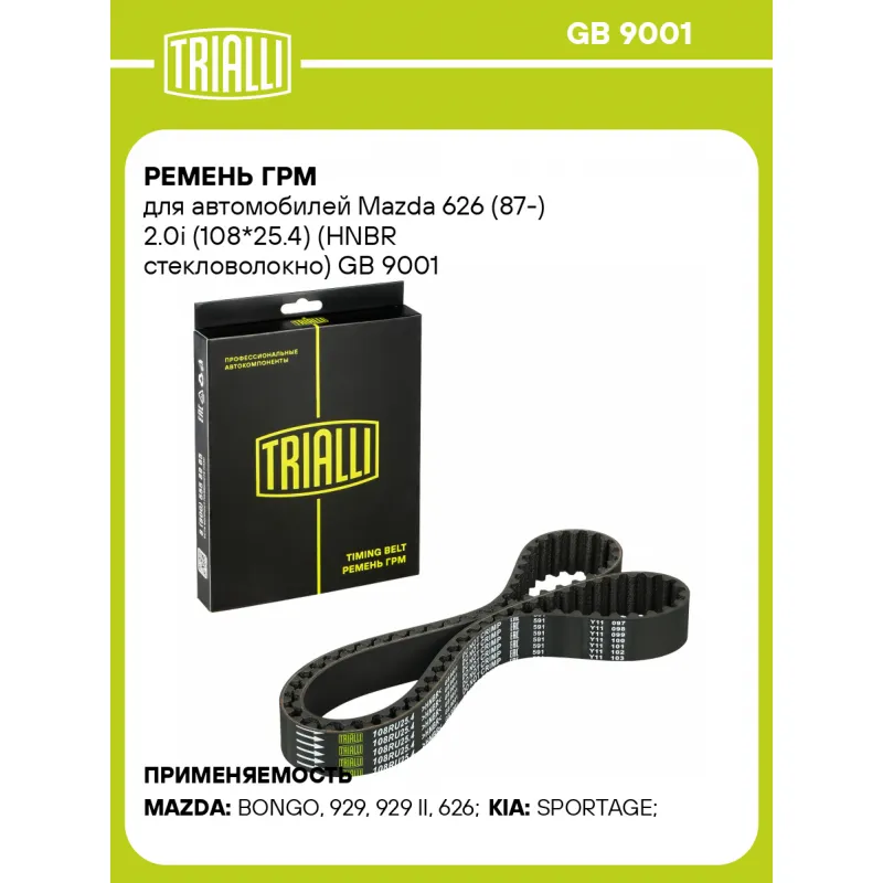 Ремень ГРМ для автомобилей Mazda 626 (87-) 2.0i (108*25.4) (HNBR стекловолокно) Характеристики: Артикул: GB 9001 OEM номера: 0K97212205, FE1H12205, FE1H12205A, FE1H12205A9A, FE1H12SF0, FE1J12205, FE1J12205A, FEIH12205A, FEIH12205A9A Материал: HNBR Особенности конструкции:: 108RU25.4 Ширина, мм: 25,4 Количество ребер: 108 Длина, ... Читать полностью →