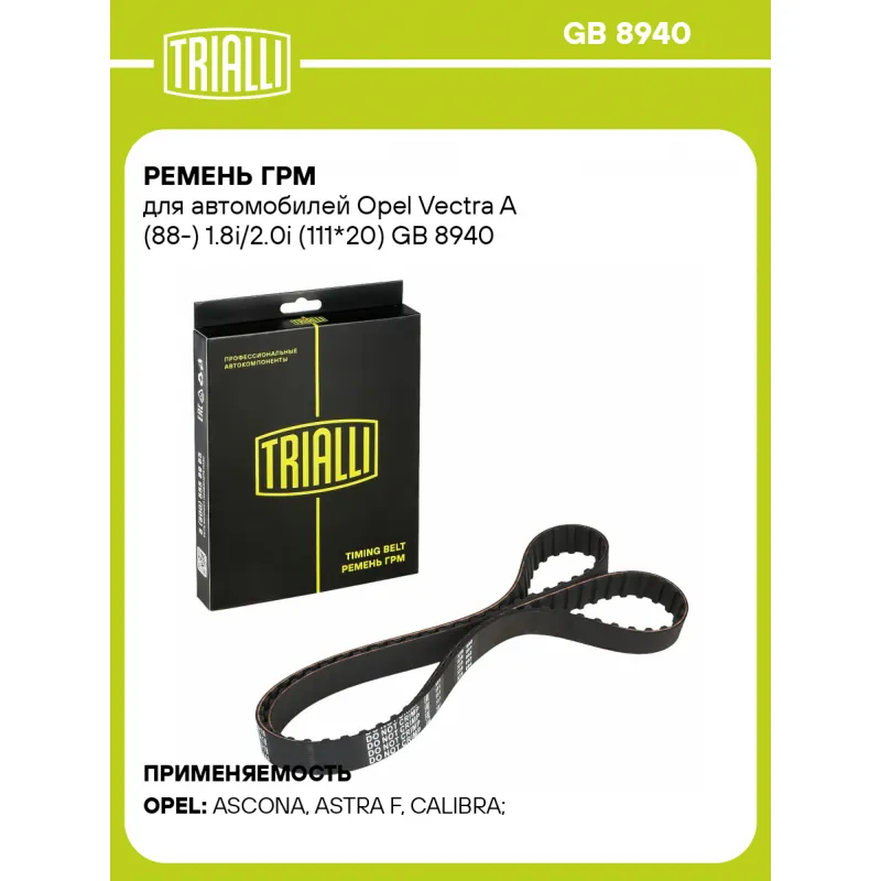 Ремень ГРМ для автомобилей Opel Vectra A (88-) 1.8i/2.0i (111*20) Характеристики: Артикул: GB 8940 OEM номера: 636350, 636359, 636370, 636560, 636565, 90410014, 90325578, 636363, 90122429, 90234902, 90353211, 90409900 Материал: Полихлоропрен (CR) Особенности конструкции:: 111RS20 Ширина, мм: 20 Количество ребер: 111 Длина, мм.: ... Читать полностью →