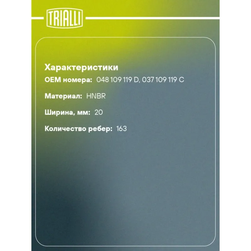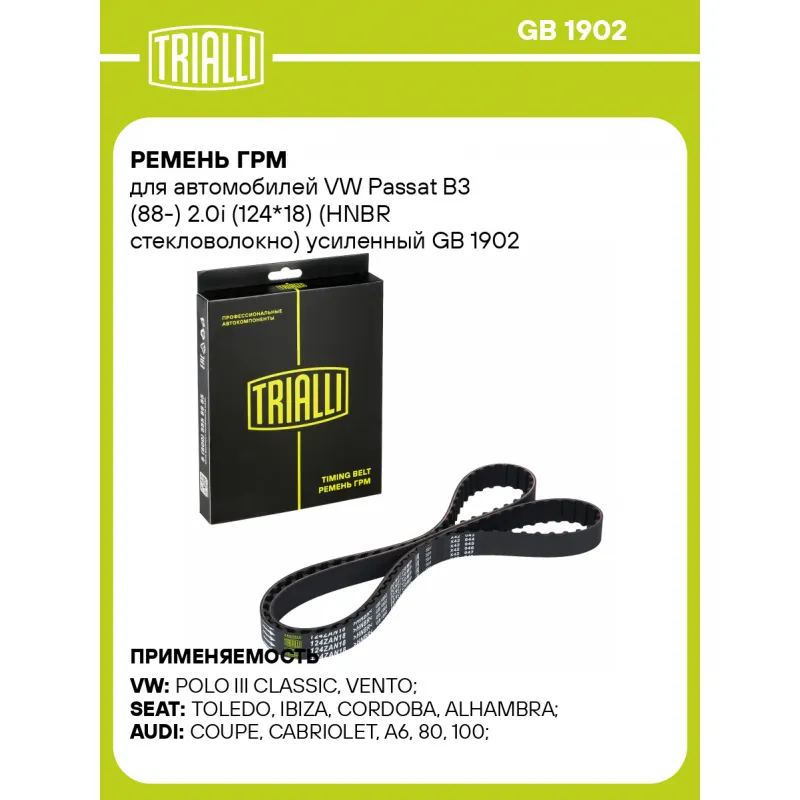 Ремень ГРМ для автомобилей VW Passat B3 (88-) 2.0i (124*18) (HNBR стекловолокно) усиленный Характеристики: Артикул: GB 1902 OEM номера: 048 109 119 D, 037 109 119 C Материал: HNBR Особенности конструкции:: 124ZAN18 Ширина, мм: 20 Количество ребер: 163 Длина, мм.: 1141 Гарантийный срок: 2 года/60 000 км. Товарная линейка: BLACK К... Читать полностью →