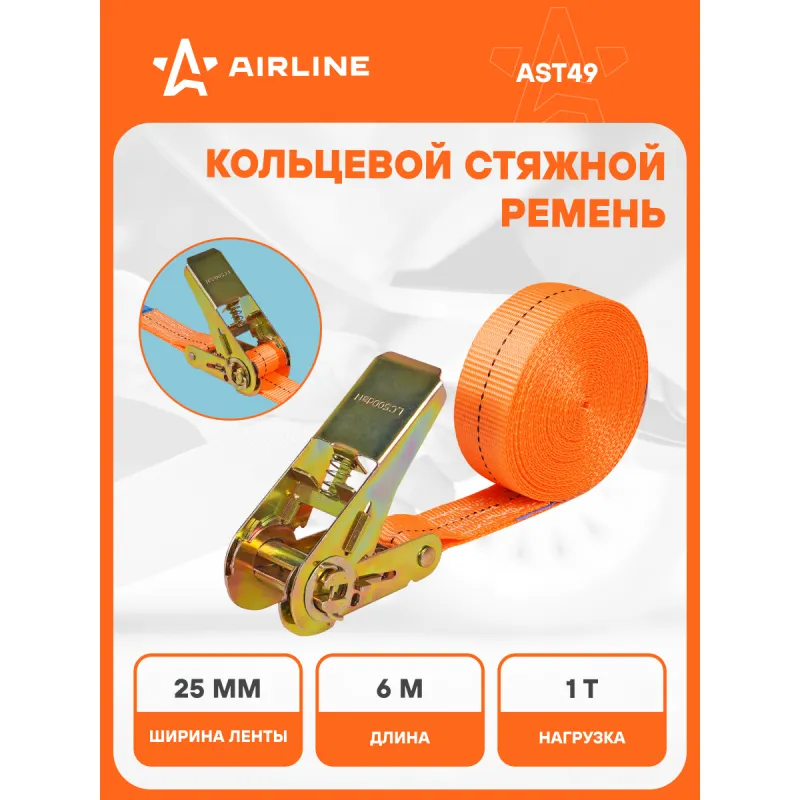 Ремень крепления груза с храповиком, кольцевой 1 т, 6 м Описание: Кольцевые ремни крепления груза AIRLINE отличаются высокой прочностью и долговечностью благодаря использованию специальных материалов и инновационных технологий. Они оснащены стальным храповым механизмом, который обеспечивает надежную фиксацию груза и предотвращает его смещение при движении и маневрировании. Ремни изготовлены из морозо- и влагостойкой полиэстеровой ленты, которая не стирается со временем и не выгорает на солнце. Благодаря технологии THERMO-FLEX, разработанной компанией AIRLINE - термофиксация самого материала и его дальнейшее растягивание, увеличена прочность и срок службы ремней по сравнению с бюджетными аналогами. Минимальный процент удлинения при максимальной нагрузке (менее 7%) обеспечивает безопасность и надежность при перевозке грузов. Кольцевые стяжные ремни AIRLINE идеально подходят для крепления грузов на грузовых транспортных средствах, прицепах и в багажнике автомобилей, а также для фиксации различных предметов, обеспечивая безопасность и сохранность груза в любых условиях во время различных поездок на рыбалку и туристические поездки. Ремни можно использовать для закрепления снаряжения, такого как палатки, спальные мешки или рюкзаки, крупногабаритный груз и т.д. Важно отметить, что ремень НЕ ПРЕДНАЗНАЧЕН ДЛЯ ПОДЪЕМА грузов. Зажимной ремень - это незаменимый автотовар, который широко используется при перевозке грузов, так как позволяет надежно закрепить груз в грузовых автомобилях, на эвакуаторе. Вас также может заинтересовать ремень стяжной с храповым механизмом и крюками. Утяжка груза. Товар официального производителя AIRLINE. В нашем магазине, вы найдете широкий ассортимент высококачественных автотоваров, автозапчастей, аксессуары для мотоцикла, ремонтные комплекты, аксессуары для машины, электрооборудование, ремни и сетки грузовые и багажные, резинки стяжки и многое другое. Характеристики: Артикул: AST49 Допустимая масса груза, т: 1 Длина, м: 6 Ширина ленты, мм: 25 Материал ленты: Полиэстер Фиксатор: Храповой механизм Метариал храпового механизма: Сталь Комплектация: Кольцевой ремень крепления груза - 1 шт Пакет с навершием - 1 шт Гарантия: от 1 года.
