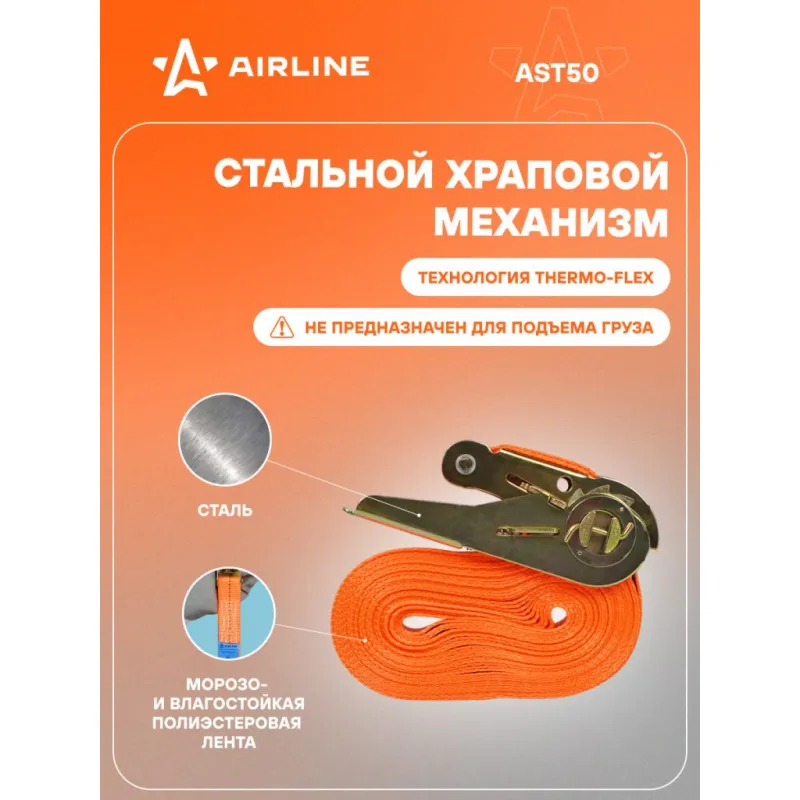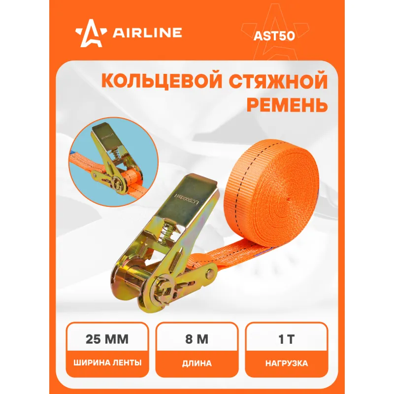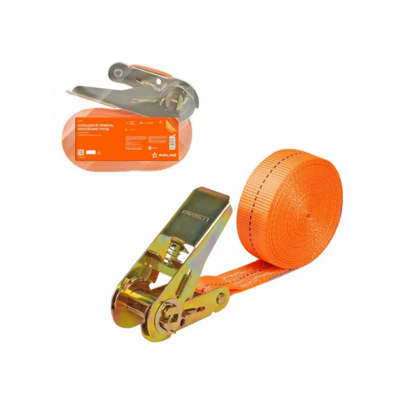 Ремень крепления груза с храповиком, кольцевой 1 т, 8 м Описание: Кольцевые ремни крепления груза AIRLINE отличаются высокой прочностью и долговечностью благодаря использованию специальных материалов и инновационных технологий. Они оснащены стальным храповым механизмом, который обеспечивает надежную фиксацию груза и предотвращает его смещение при движении и маневрировании. Ремни изготовлены из морозо- и влагостойкой полиэстеровой ленты, которая не стирается со временем и не выгорает на солнце. Благодаря технологии THERMO-FLEX, разработанной компанией AIRLINE - термофиксация самого материала и его дальнейшее растягивание, увеличена прочность и срок службы ремней по сравнению с бюджетными аналогами. Минимальный процент удлинения при максимальной нагрузке (менее 7%) обеспечивает безопасность и надежность при перевозке грузов. Кольцевые стяжные ремни AIRLINE идеально подходят для крепления грузов на грузовых транспортных средствах, прицепах и в багажнике автомобилей, а также для фиксации различных предметов, обеспечивая безопасность и сохранность груза в любых условиях во время различных поездок на рыбалку и туристические поездки. Ремни можно использовать для закрепления снаряжения, такого как палатки, спальные мешки или рюкзаки, крупногабаритный груз и т.д. Важно отметить, что ремень НЕ ПРЕДНАЗНАЧЕН ДЛЯ ПОДЪЕМА грузов. Зажимной ремень - это незаменимый автотовар, который широко используется при перевозке грузов, так как позволяет надежно закрепить груз в грузовых автомобилях, на эвакуаторе. Вас также может заинтересовать ремень стяжной с храповым механизмом и крюками. Утяжка груза. Товар официального производителя AIRLINE. В нашем магазине, вы найдете широкий ассортимент высококачественных автотоваров, автозапчастей, аксессуары для мотоцикла, ремонтные комплекты, аксессуары для машины, электрооборудование, ремни и сетки грузовые и багажные, резинки стяжки и многое другое. Характеристики: Артикул: AST50 Допустимая масса груза, т: 1 Длина, м: 8 Ширина ленты, мм: 25 Материал ленты: Полиэстер Фиксатор: Храповой механизм Метариал храпового механизма: Сталь Комплектация: Кольцевой ремень крепления груза - 1 шт Пакет с навершием - 1 шт Гарантия: от 1 года.