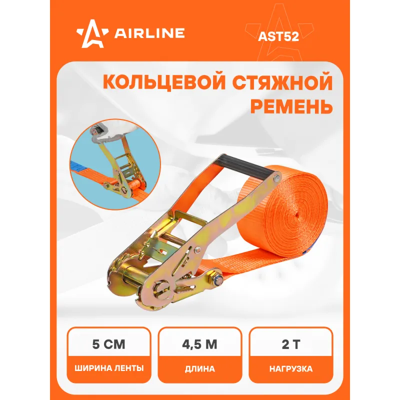 Ремень крепления груза с храповиком, кольцевой 2 т, 4,5 м Описание: Кольцевые ремни крепления груза AIRLINE отличаются высокой прочностью и долговечностью благодаря использованию специальных материалов и инновационных технологий. Они оснащены стальным храповым механизмом, который обеспечивает надежную фиксацию груза и предотвращает его смещение при движении и маневрировании. Ремни изготовлены из морозо- и влагостойкой полиэстеровой ленты, которая не стирается со временем и не выгорает на солнце. Благодаря технологии THERMO-FLEX, разработанной компанией AIRLINE - термофиксация самого материала и его дальнейшее растягивание, увеличена прочность и срок службы ремней по сравнению с бюджетными аналогами. Минимальный процент удлинения при максимальной нагрузке (менее 7%) обеспечивает безопасность и надежность при перевозке грузов. Кольцевые стяжные ремни AIRLINE идеально подходят для крепления грузов на грузовых транспортных средствах, прицепах и в багажнике автомобилей, а также для фиксации различных предметов, обеспечивая безопасность и сохранность груза в любых условиях во время различных поездок на рыбалку и туристические поездки. Ремни можно использовать для закрепления снаряжения, такого как палатки, спальные мешки или рюкзаки, крупногабаритный груз и т.д. Важно отметить, что ремень НЕ ПРЕДНАЗНАЧЕН ДЛЯ ПОДЪЕМА грузов. Зажимной ремень - это незаменимый автотовар, который широко используется при перевозке грузов, так как позволяет надежно закрепить груз в грузовых автомобилях, на эвакуаторе. Вас также может заинтересовать ремень стяжной с храповым механизмом и крюками. Утяжка груза. Товар официального производителя AIRLINE. В нашем магазине, вы найдете широкий ассортимент высококачественных автотоваров, автозапчастей, аксессуары для мотоцикла, ремонтные комплекты, аксессуары для машины, электрооборудование, ремни и сетки грузовые и багажные, резинки стяжки и многое другое. Характеристики: Артикул: AST52 Допустимая масса груза, т: 2 Длина, м: 4,5 Ширина ленты, мм: 50 Материал ленты: Полиэстер Фиксатор: Храповой механизм Метариал храпового механизма: Сталь Комплектация: Кольцевой ремень крепления груза - 1 шт Бумажная вкладка и термоусадка - 1 шт Гарантия: от 1 года.