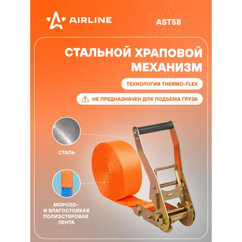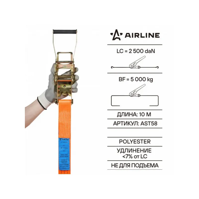 Ремень крепления груза с храповиком, кольцевой 5 т, 10 м Описание: Кольцевые ремни крепления груза AIRLINE отличаются высокой прочностью и долговечностью благодаря использованию специальных материалов и инновационных технологий. Они оснащены стальным храповым механизмом, который обеспечивает надежную фиксацию груза и предотвращает его смещение при движении и маневрировании. Ремни изготовлены из морозо- и влагостойкой полиэстеровой ленты, которая не стирается со временем и не выгорает на солнце. Благодаря технологии THERMO-FLEX, разработанной компанией AIRLINE - термофиксация самого материала и его дальнейшее растягивание, увеличена прочность и срок службы ремней по сравнению с бюджетными аналогами. Минимальный процент удлинения при максимальной нагрузке (менее 7%) обеспечивает безопасность и надежность при перевозке грузов. Кольцевые стяжные ремни AIRLINE идеально подходят для крепления грузов на грузовых транспортных средствах, прицепах и в багажнике автомобилей, а также для фиксации различных предметов, обеспечивая безопасность и сохранность груза в любых условиях во время различных поездок на рыбалку и туристические поездки. Ремни можно использовать для закрепления снаряжения, такого как палатки, спальные мешки или рюкзаки, крупногабаритный груз и т.д. Важно отметить, что ремень НЕ ПРЕДНАЗНАЧЕН ДЛЯ ПОДЪЕМА грузов. Зажимной ремень - это незаменимый автотовар, который широко используется при перевозке грузов, так как позволяет надежно закрепить груз в грузовых автомобилях, на эвакуаторе. Вас также может заинтересовать ремень стяжной с храповым механизмом и крюками. Утяжка груза. Товар официального производителя AIRLINE. В нашем магазине, вы найдете широкий ассортимент высококачественных автотоваров, автозапчастей, аксессуары для мотоцикла, ремонтные комплекты, аксессуары для машины, электрооборудование, ремни и сетки грузовые и багажные, резинки стяжки и многое другое. Характеристики: Артикул: AST58 Допустимая масса груза, т: 5 Длина, м: 10 Ширина ленты, мм: 50 Материал ленты: Полиэстер Фиксатор: Храповой механизм Метариал храпового механизма: Сталь Комплектация: Кольцевой ремень крепления груза - 1 шт Бумажная вкладка и термоусадка - 1 шт Гарантия: от 1 года.