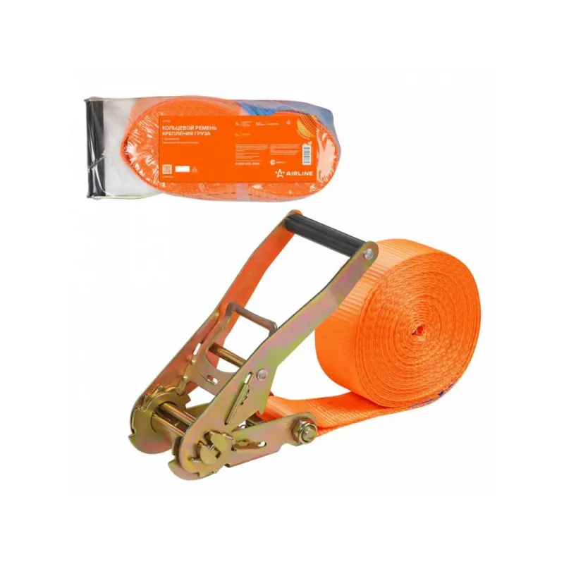 Ремень крепления груза с храповиком, кольцевой 5 т, 6 м Описание: Кольцевые ремни крепления груза AIRLINE отличаются высокой прочностью и долговечностью благодаря использованию специальных материалов и инновационных технологий. Они оснащены стальным храповым механизмом, который обеспечивает надежную фиксацию груза и предотвращает его смещение при движении и маневрировании. Ремни изготовлены из морозо- и влагостойкой полиэстеровой ленты, которая не стирается со временем и не выгорает на солнце. Благодаря технологии THERMO-FLEX, разработанной компанией AIRLINE - термофиксация самого материала и его дальнейшее растягивание, увеличена прочность и срок службы ремней по сравнению с бюджетными аналогами. Минимальный процент удлинения при максимальной нагрузке (менее 7%) обеспечивает безопасность и надежность при перевозке грузов. Кольцевые стяжные ремни AIRLINE идеально подходят для крепления грузов на грузовых транспортных средствах, прицепах и в багажнике автомобилей, а также для фиксации различных предметов, обеспечивая безопасность и сохранность груза в любых условиях во время различных поездок на рыбалку и туристические поездки. Ремни можно использовать для закрепления снаряжения, такого как палатки, спальные мешки или рюкзаки, крупногабаритный груз и т.д. Важно отметить, что ремень НЕ ПРЕДНАЗНАЧЕН ДЛЯ ПОДЪЕМА грузов. Зажимной ремень - это незаменимый автотовар, который широко используется при перевозке грузов, так как позволяет надежно закрепить груз в грузовых автомобилях, на эвакуаторе. Вас также может заинтересовать ремень стяжной с храповым механизмом и крюками. Утяжка груза. Товар официального производителя AIRLINE. В нашем магазине, вы найдете широкий ассортимент высококачественных автотоваров, автозапчастей, аксессуары для мотоцикла, ремонтные комплекты, аксессуары для машины, электрооборудование, ремни и сетки грузовые и багажные, резинки стяжки и многое другое. Характеристики: Артикул: AST56 Допустимая масса груза, т: 5 Длина, м: 6 Ширина ленты, мм: 50 Материал ленты: Полиэстер Фиксатор: Храповой механизм Метариал храпового механизма: Сталь Комплектация: Кольцевой ремень крепления груза - 1 шт Бумажная вкладка и термоусадка - 1 шт Гарантия: от 1 года.