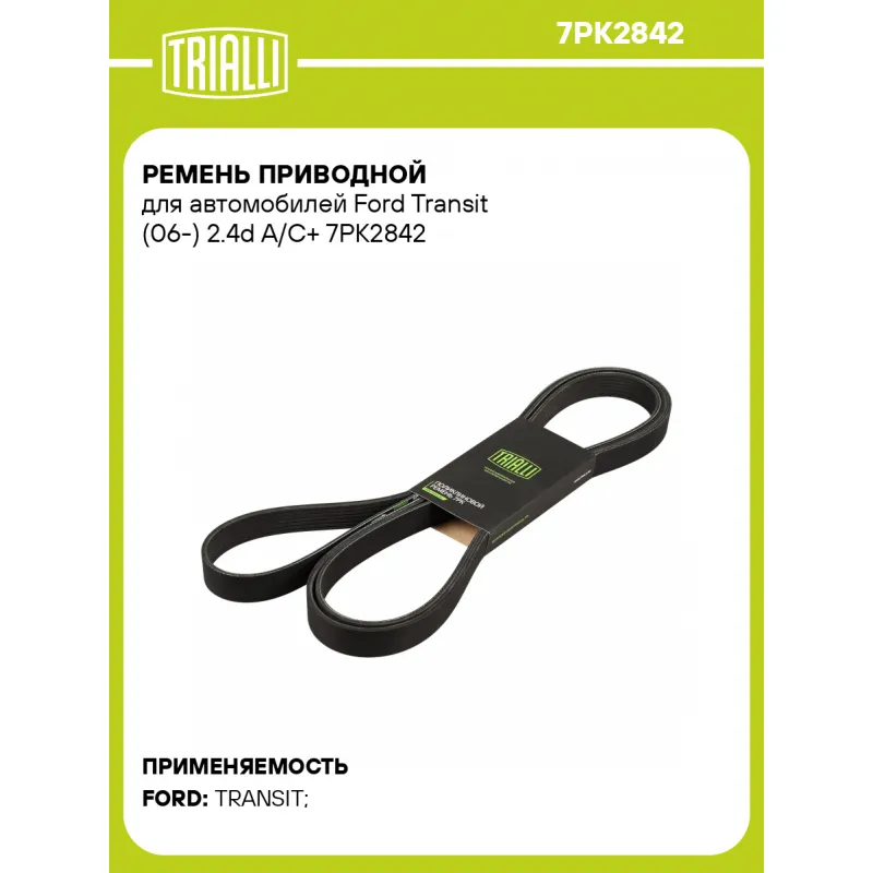 Ремень приводной для автомобилей Ford Transit (06-) 2.4d A/C+ Характеристики: Артикул: 7PK2842 OEM номера: 1376752, 1440434, 6C1Q6C301HB, 6C1Q6C301HC, 1372764 Материал: EPDM Количество ребер: 7 Длина, мм.: 2842 Гарантийный срок: 2 года/60 000 км. Товарная линейка: BLACK Количество на автомобиль: 1 Комплектация: Ремень поликлиновой - 1 шт Гарантия: от 1 года.