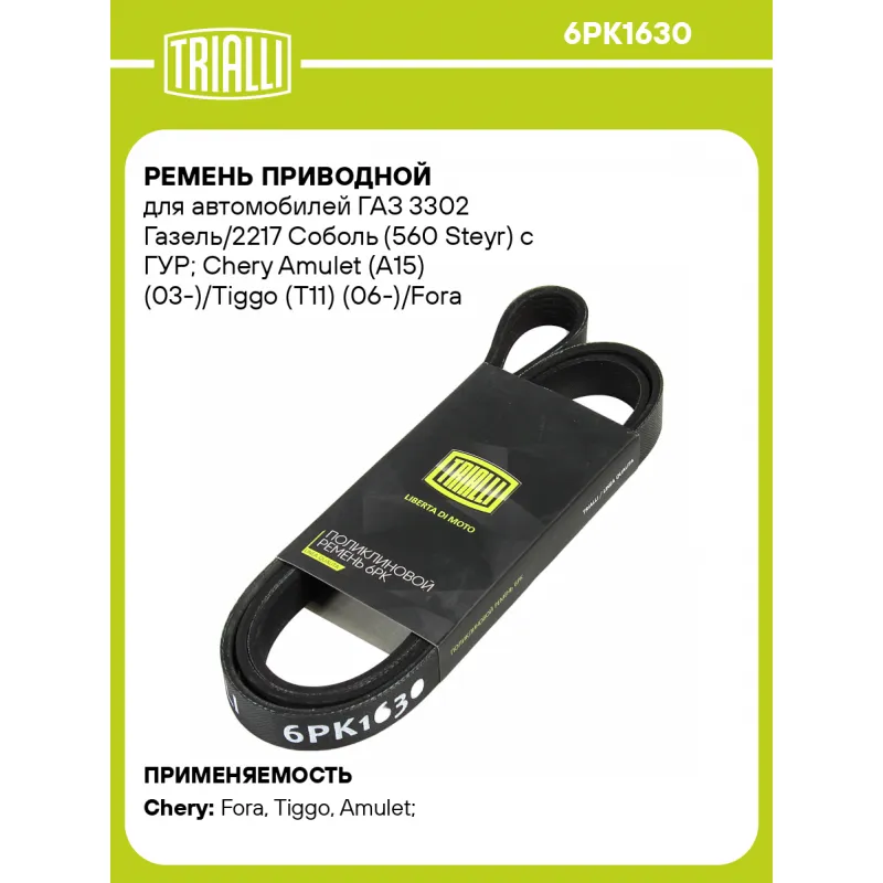 Ремень приводной для автомобилей ГАЗ 3302 Газель/2217 Соболь (560 Steyr) c ГУР; Chery Amulet (A15) (03-)/Tiggo (T11) (06-)/Fora (A21) (06-) (6PK1630) Характеристики: Артикул: 6PK1630 OEM номера: A113701315DA, 078903137AN, 6180852, 6180853, 6758562, 7120853, 91SF6C301A1A, 91SF6C301A2A, 91SF6C301A2B, 944F6C301CA, MD118716, MD134959, 1340050, 55571050, 4918150J40, 88986810, 19244956, 2203557/0, B11-3701315BA, 560.1045020 Количество на автомобиль: 1 Длина, мм.: 1630 Количество ребер: 6 Материал: Резина EPDM Товарная линейка: BLACK Подходит для авто: Chery Fora (A21) (06-), Tiggo (T11) (06-), Amulet (A15) (03-), Amulet (A15) (03-) Для проверки применяемости отправьте VIN автомобиля через вкладку "Есть вопросы о товаре?" Комплектация: Ремень поликлиновой - 1 шт Гарантия: от 1 года.
