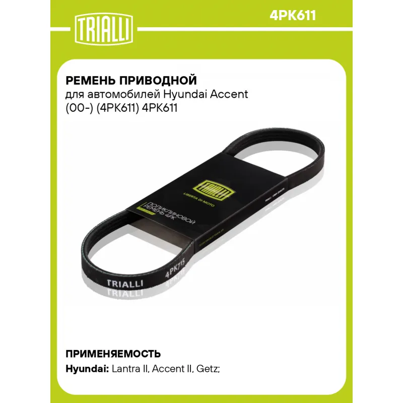Ремень приводной для автомобилей Hyundai Accent (00-) (4PK611) Характеристики: Артикул: 4PK611 OEM номера: 12311342087, 11281341779, 1341779, 57231-22000, 57231-29050 Количество на автомобиль: 1 Длина, мм.: 611 Количество ребер: 4 Материал: EPDM Товарная линейка: BLACK Длинна, мм.: 611 Номера аналоги: 4PK609, 4PK610, 4PK611, 4PK612, 4PK613 Подходит для авто: Hyundai Lantra II (95-), Accent II (99-), Getz (02-), Accent I (94-) Для проверки применяемости отправьте VIN автомобиля через вкладку "Есть вопросы о товаре?" Комплектация: Ремень поликлиновой - 1 шт Гарантия: от 1 года.