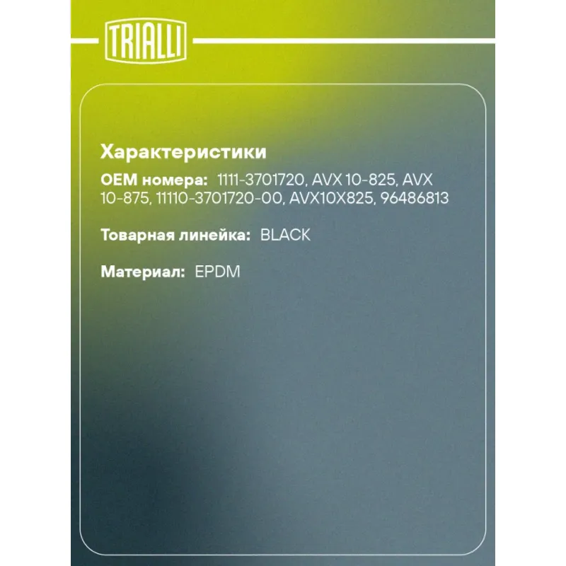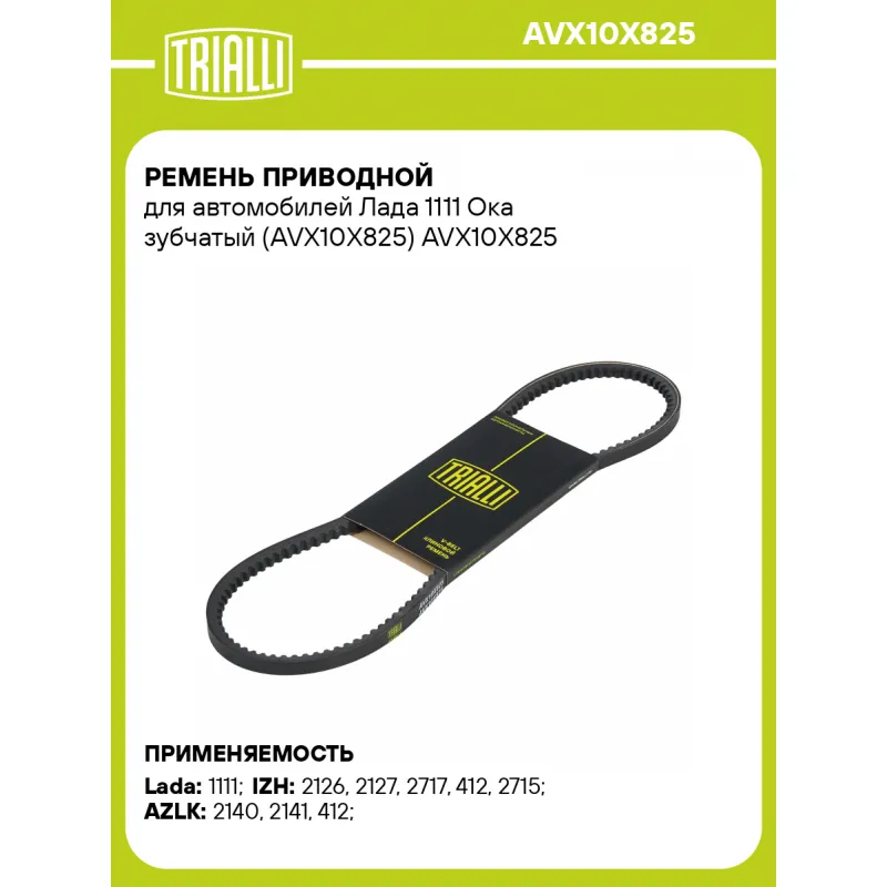 Ремень приводной для автомобилей Лада 1111 Ока зубчатый (AVX10X825) Характеристики: Артикул: AVX10X825 OEM номера: 1111-3701720, AVX 10-825, AVX 10-875, 11110-3701720-00, AVX10X825, 96486813 Длина: 825 Длина, мм.: 825 Гарантийный срок: 2 года/60 000 км. Количество на автомобиль: 1 Материал: EPDM Товарная линейка: BLACK Подходит для авто: ВАЗ 1111 (Ока) IZH 2126, 2127, 2717, 412, 2715 AZLK 2140, 2141, 412 Для проверки применяемости отправьте VIN автомобиля через вкладку "Есть вопросы о товаре?" Комплектация: Ремень клиновой - 1 шт Гарантия: от 1 года.