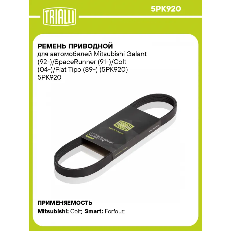 Ремень приводной для автомобилей Mitsubishi Galant (92-)/SpaceRunner (91-)/Colt (04-)/Fiat Tipo (89-) (5PK920) Характеристики: Артикул: 5PK920 OEM номера: 60812429, 71749431, 64557787898, 9936500920, 9936550920, 7627106, 7640258, 7629229, MN176570, 90916-02278, 90916-02279, 9936520920, 9936580920, 99365-90920, 99365-20920-8P, V1090922, V1091153, 205913, 3807293, 0009932496, A0009932496, 9932496, 38920-PV1-A01 Количество на автомобиль: 1 Длина, мм.: 920 Количество ребер: 5 Материал: EPDM Товарная линейка: BLACK Номера аналоги: 5PK918, 5PK919, 5PK920, 5PK921, 5PK922 Подходит для авто: Mitsubishi Colt (04-) Smart Forfour (04-) Для проверки применяемости отправьте VIN автомобиля через вкладку "Есть вопросы о товаре?" Комплектация: Ремень поликлиновой - 1 шт Гарантия: от 1 года.