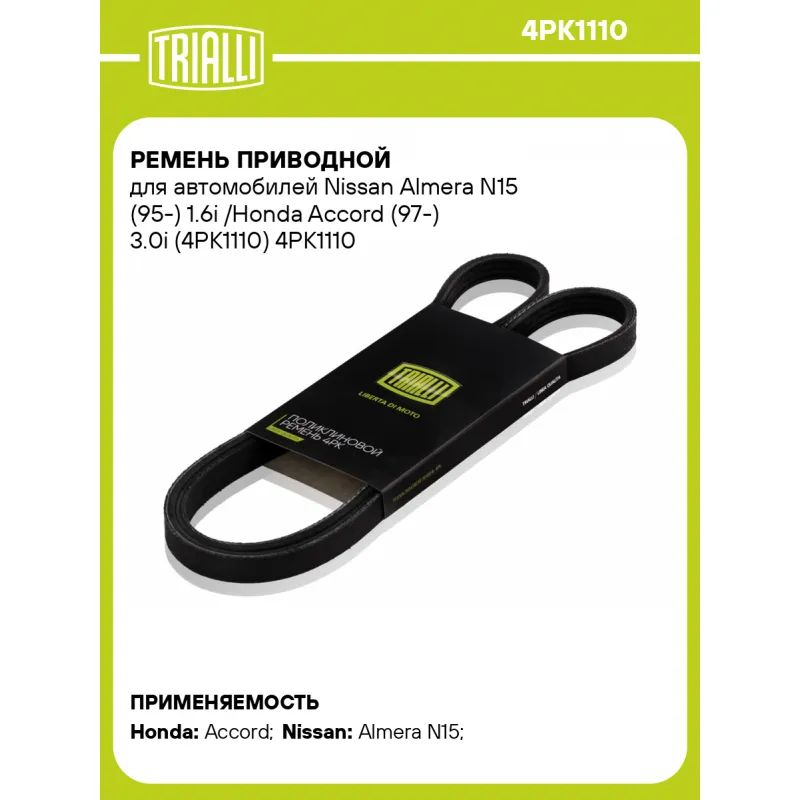 Ремень приводной для автомобилей Nissan Almera N15 (95-) 1.6i /Honda Accord (97-) 3.0i (4PK1110) Характеристики: Артикул: 4PK1110 OEM номера: 38920-P64-003, 38920-P64-004, 56992P8AA01, 1N20-18-381, MQ900831, 11720-0M311, 117200M312, 117200M313, 11720-16V01, 11720-16V02, 11720-16V11, 11920-HA001, AY14041105, 9936481110, 9936431110, 9936421110, 9936451110, 0K9A015909, 0K9A115909 Количество на автомобиль: 1 Длина, мм.: 1110 Количество ребер: 4 Материал: EPDM Товарная линейка: BLACK Номера аналоги: 4PK1108, 4PK1109, 4PK1110, 4PK1111, 4PK1112 Подходит для авто: Honda Accord (97-) Nissan Almera N15 (95-) Для проверки применяемости отправьте VIN автомобиля через вкладку "Есть вопросы о товаре?" Комплектация: Ремень поликлиновой - 1 шт Гарантия: от 1 года.