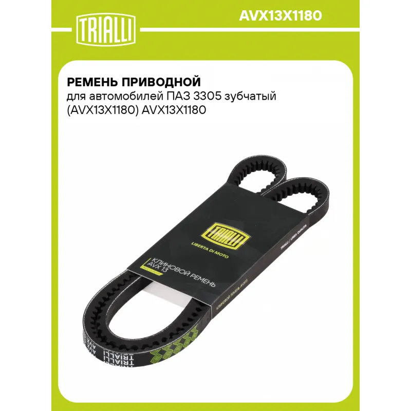 Ремень приводной для автомобилей ПАЗ 3305 зубчатый (AVX13X1180) Характеристики: Артикул: AVX13X1180 OEM номера: 9142151342, 9142151290, 9142151340, 90916-02397 Гарантийный срок: 2 года/60 000 км. Количество на автомобиль: 1 Длина, мм.: 1180 Материал: EPDM Товарная линейка: BLACK Комплектация: Ремень клиновой зубчатый - 1 шт ... Читать полностью →