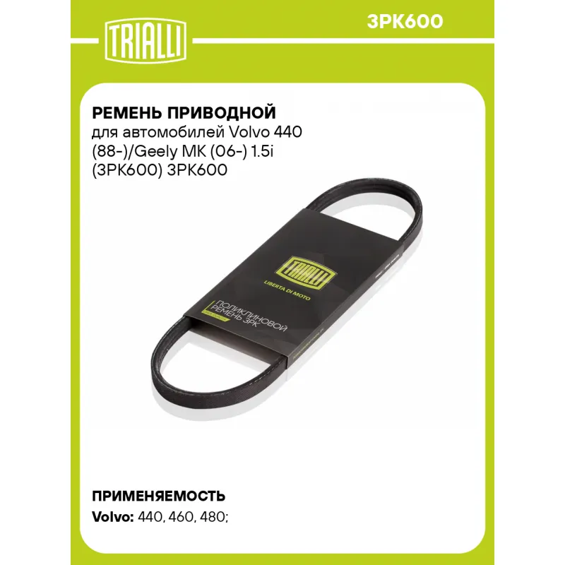 Ремень приводной для автомобилей Volvo 440 (88-)/Geely MK (06-) 1.5i (3PK600) Характеристики: Артикул: 3PK600 OEM номера: 3454404, 3473197, 3474598, 474598 Количество на автомобиль: 1 Длина, мм.: 600 Количество ребер: 3 Материал: EPDM Товарная линейка: BLACK Номера аналоги: 3PK598, 3PK599, 3PK600, 3PK601, 3PK602 Подходит для авто: Volvo 440 (88-), 460 (88-), 480 (86-) Для проверки применяемости отправьте VIN автомобиля через вкладку "Есть вопросы о товаре?" Комплектация: Ремень поликлиновой - 1 шт Гарантия: от 1 года.