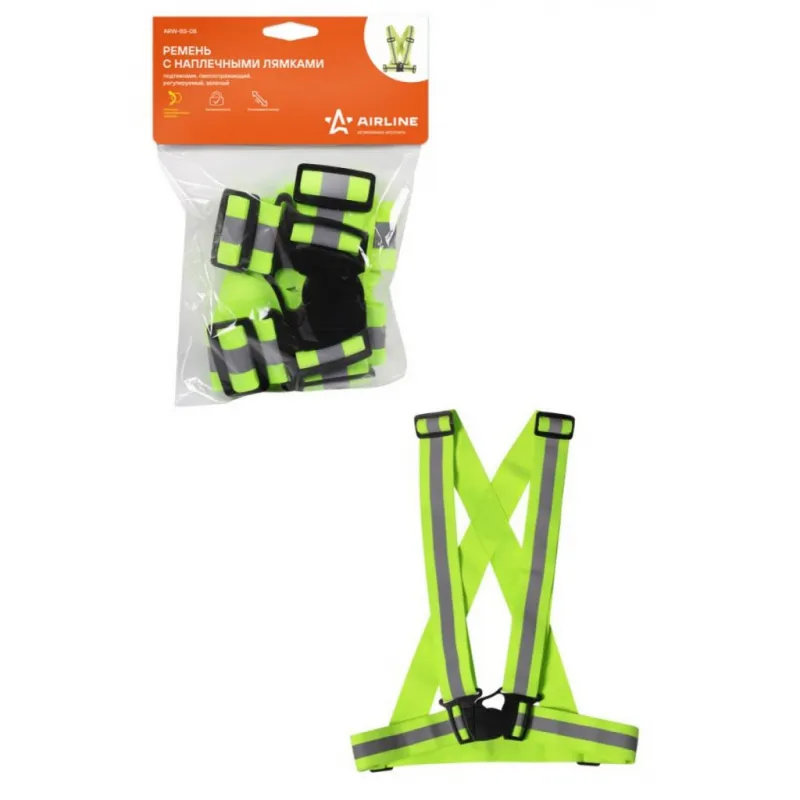 Ремень с наплечными лямками (подтяжками) светоотражающий, регулируемый размер, зеленый Описание: Ремень с диагональными наплечными лямками со световозращающим элементом в виде центральной полоски. Изготовлен из сшитых между собой широких резинок с регулируемыми пряжками-бегунками и застежкой фастексом. Крепиться на поясе и плечах человека для улучшения видимости на дальнем расстоянии в темное время суток. Характеристики: Артикул: ARW-BS-08 Длина до, мм: 530 Ширина до, мм: 490 Вид застежки: фастекс Цвет: зеленый Размер: универсальный Регулировка: есть Плотность материала, ден: 420 Длина от, мм: 340 Ширина от, мм: 340 Ширина ленты (мм): 50 Комплектация: Ремень с лямками - 1 шт ПЭ пакет - 1 шт Гарантия: от 1 года.