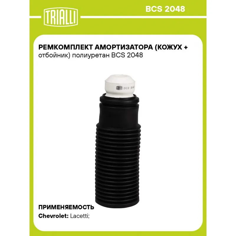 Ремкомплект амортизатора (кожух + отбойник) полиуретан Характеристики: Артикул: BCS 2048 OEM номера: 46432398, 46544149, 46760030, 50701099, 51755690, 50709096, 13117280, 03 44 402, 03 44 349, 13189414, 344956, 03 44 492, 344349, 03 44 421, 3 44 421, 3 44 402, 03 44 496, 03 44 727, 3 44 492, 3 44 496, 3 44 727, 53 44 026, 9191302, 93171476, 93171477, 93171478, 93171479, 93171480, 93171481, 30647076, 6800221, 8672087, 9140068, 9191383, 9140067, 30760914, 9140129, 13256850, 13315664, 13356026, 1J0 412 303, 6Q0 412 301A, 1K0 412 303 E, 1K0 412 303 F, 90125889, 13257624, 51799996 Товарная линейка: BLACK Количество на автомобиль: 2 Материал: Пенополиуретан/Термоэластопласт Внутренний диаметр отбойника, мм: 20 Высота отбойника, мм: 48 Гарантийный срок: 2 года/60 000 км Подходит для авто: Chevrolet Lacetti (04-) Для проверки применяемости отправьте VIN автомобиля через вкладку "Есть вопросы о товаре?" Комплектация: Пылезащитный кожух (пыльник) - 1 шт Отбойник (буфер) - 1 шт Гарантия: от 1 года.