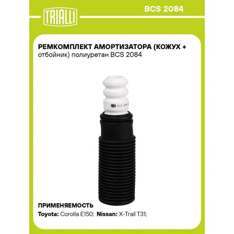 Ремкомплект амортизатора (кожух + отбойник) полиуретан Характеристики: Артикул: BCS 2084 OEM номера: K05171137AB, 31 13 3 140 140, 31 33 1 140 140, 31 13 3 094 750, 31 13 3 094 751, 31 33 1 094 751, 31 33 6 778 544, 31 33 6 771 380, 31 33 1 134 921, 31 33 6 768 208, 31 33 6 773 619, 31 33 1 094 750, 31 13 3 750 892, 31 33 6 750 892, 31 30 6 757 046, 31 33 6 757 046, 31 33 6 767 320, 31 33 6 771 352, 05171137AB, 5171137AB, 5105543AD, 05105543AC, 05105543AD, MB303069, 5033.35, 5033.E3, 96 776 090 80, 5033.E7, 5033.E9, 46758416, 5181802, 51851802, 51810447, 95511416, 51908130, 51935060, 344815, 1011898, 1254220, 2S613025AE, 1751936, 1775521, 2016623, 95VW3025CB, YL8Z-18A085-AB, 5038895, 9L84-18061-AA, 4415618, 4462369, 2S613025AA, 1146129, 1003435, 7200939, 7345111, 1695065, 1347289, B45A-34-111, B4YA-34-111, BJS7-34-111, B45A-34-111A, L20634111B, L206-34-111A, EC01-34-111B, E11234111A, EC0134111D, GRT7-34-111, GHP9-34-111, D350-34-111C, DD32-34-111, DD3234111A, EC01-34-111A, EC01-34-111C, E112-34-111B, A129 323 07 44, A124 323 07 44, A156 321 00 06, 156 321 00 06, A124 323 08 44, 124 323 08 44, 129 323 07 44, 124 323 07 44, 4055A048, 4055A031, MR 961189, 03 44 416, 03 44 842, 03 45 023, 3 44 842, 3 45 023, 03 44 815, 344416, 96 764 082 80, 5033.88, 5033.91, 5033.C0, 96 811 622 80, 20371-FC000, 20321-AG010, 20371-AA040, 20371-AA041, 42111-65J00, 42111-65J00-000, 42111-80J00, 42251-54G10, 42111-79J00, 42111-79J00-000, 42111-80J00-000, 42251-54G10-000, 48341-32053, 48331-12220, 48331-05020, 48331-20130, 48331-42080, 48331-02070, 4834132054, 48341-48050, 48341-48020, 48341-32071, 48341-32070, 48341-32051, 48341-06010, 48341-06011, 48341-32050, 48341-32052, 4834132080, 48331-12210, 48331-AB010, 48341-48010, 48341-AA010, 48341-06012, 48341-05010, 96682253, 003 44 842, 003 45 023, 54623-3A000, 54626-3S000, 54626-2B000, 54626-26000, 54626-4H000, 54626-2E000, 54626-1G000, 54626-2G000, 54626-0Z000, 54626-2W000, 54626-3A000, 546264D000, 546261D000, 1K0 412 303 T, 5Q0 412 303, 1K0 412 303 M, 7L8 412 303, 893412131, 1K0 412 303S, 1K0 412 303 AA, 5QF412303, 1K0 412 303 H, 7M0 412 303B, 1K0 412 303 L, 95319189, 90468314, 96403109, 31 33 6 855 440, 1K0 412 303 G Товарная линейка: BLACK Количество на автомобиль: 2 Материал: Пенополиуретан/Термоэластопласт Внутренний диаметр отбойника, мм: 20 Высота отбойника, мм: 84 Гарантийный срок: 2 года/60 000 км Подходит для авто: Toyota Corolla E150 (06-), Corolla E150 (06-) Nissan X-Trail T31 (07-) Для проверки применяемости отправьте VIN автомобиля через вкладку "Есть вопросы о товаре?" Комплектация: Пылезащитный кожух (пыльник) - 1 шт Отбойник (буфер) - 1 шт Гарантия: от 1 года.