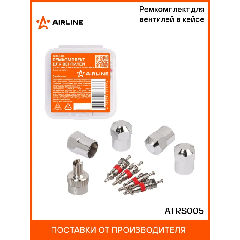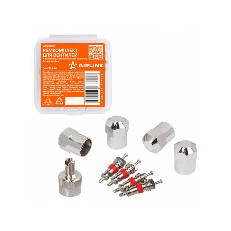 Ремкомплект для вентилей (4 золотника, 4 металл.колп, 1 ключ) в кейсе Описание: Ремкомплект для вентилей (4 золотника, 4 металлических колпачка на вентиль, ключ) в кейсе AIRLINE ATRS005 Сильные перепады температуры, химические реагенты, УФ-лучи и механическое воздействие являются частыми причинами выхода из строя золотника. Повреждение этого небольшого элемента может вызвать серьезные проблемы с управлением автомобилем. Благодаря ремкомплекту замену золотников несложно осуществить самостоятельно. Изготовлены из высококачественных материалов - цинк, латунь, сталь; Устойчивы к износу и коррозии; Удобны в использовании для профессионалов и любителей; Помимо автомобилей, ремонтный комплект подходит для мотоциклов, квадроциклов, прицепов, садовых тачек, велосипедов, снегоуборщиков, автомобилей, в числе которых: Alfa Romeo, Audi, BMW, Brilliance, BYD, Cadillac, Changan, Chery, Chevrolet, Chrysler, Citroen, Dacia, Daewoo, Daihatsu, Datsun, Dodge, FAW, Fiat, Ford, Foton, Geely, Genesis, GMC, Great Wall, Haval, Honda, Hummer, Hyundai, Infiniti, Jaguar, Jeep, Kia, LADA (ВАЗ), Land Rover, Lexus, Lifan, Lincoln, Mazda, Mercedes-Benz, MINI, Mitsubishi, Nissan, Opel, Peugeot, Pontiac, Porsche, Ravon, Renault, Rover, Saab, SEAT, Skoda, Smart, SsangYong, Subaru, Suzuki, Tesla, Toyota, Volkswagen, Volvo, ГАЗ, ЗАЗ, ЗИЛ, ИЖ, Москвич, ТагАЗ, УАЗ и другой техники. Товар официального производителя AIRLINE. Характеристики: Артикул: ATRS005 Тип золотника: Короткий Длина золотника, мм: 19 Материал золотника: Цинк Резьба колпачка: Vg5 Комплектация: Золотник - 4 шт Колпачок металлический - 4 шт Колпачок с ключом - 1 шт Пластиковый кейс - 1 шт Гарантия: от 1 года.