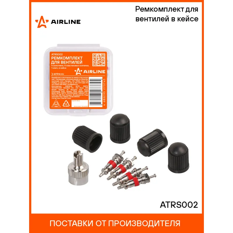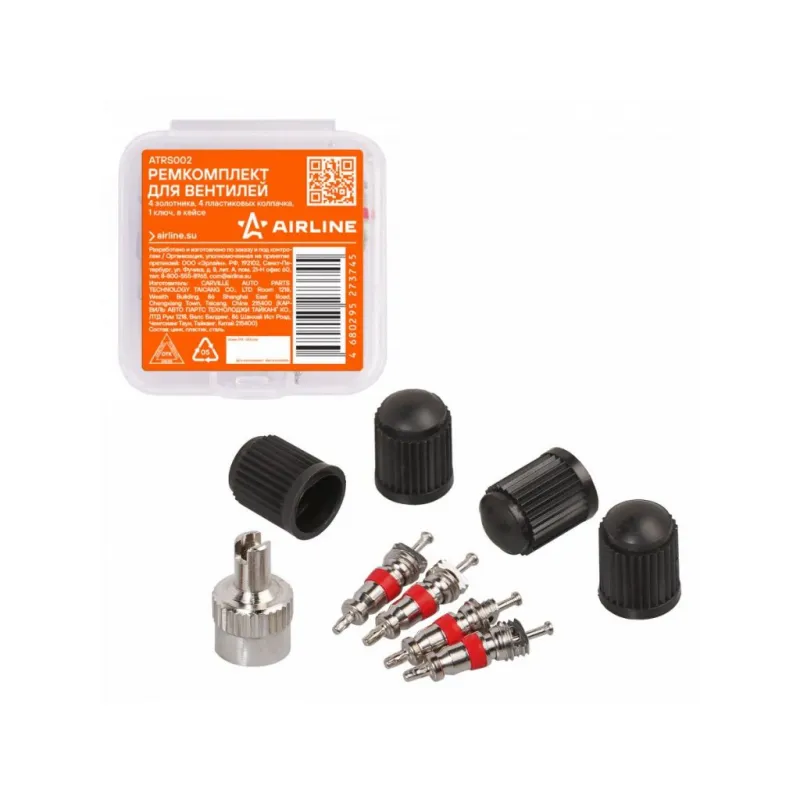 Ремкомплект для вентилей (4 золотника, 4 пласт.колп, 1 ключ) в кейсе Описание: Ремкомплект для вентилей (4 золотника, 4 колпачка на вентиль, ключ) в кейсе AIRLINE ATRS002 Сильные перепады температуры, химические реагенты, УФ-лучи и механическое воздействие являются частыми причинами выхода из строя золотника. Повреждение этого небольшого элемента может вызвать серьезные проблемы с управлением автомобилем. Благодаря ремкомплекту замену золотников несложно осуществить самостоятельно. Изготовлены из высококачественных материалов - цинк, пластик, сталь; Устойчивы к износу и коррозии; Удобны в использовании для профессионалов и любителей; Помимо автомобилей, ремонтный комплект подходит для мотоциклов, квадроциклов, прицепов, садовых тачек, велосипедов, снегоуборщиков, автомобилей, в числе которых: Alfa Romeo, Audi, BMW, Brilliance, BYD, Cadillac, Changan, Chery, Chevrolet, Chrysler, Citroen, Dacia, Daewoo, Daihatsu, Datsun, Dodge, FAW, Fiat, Ford, Foton, Geely, Genesis, GMC, Great Wall, Haval, Honda, Hummer, Hyundai, Infiniti, Jaguar, Jeep, Kia, LADA (ВАЗ), Land Rover, Lexus, Lifan, Lincoln, Mazda, Mercedes-Benz, MINI, Mitsubishi, Nissan, Opel, Peugeot, Pontiac, Porsche, Ravon, Renault, Rover, Saab, SEAT, Skoda, Smart, SsangYong, Subaru, Suzuki, Tesla, Toyota, Volkswagen, Volvo, ГАЗ, ЗАЗ, ЗИЛ, ИЖ, Москвич, ТагАЗ, УАЗ и другой техники. Товар официального производителя AIRLINE. Характеристики: Артикул: ATRS002 Тип золотника: Короткий Длина золотника, мм: 19 Материал золотника: Цинк Резьба колпачка: Vg5 Комплектация: Колпачок с ключом - 1 шт Колпачок пластиковый - 4 шт Пластиковый кейс - 1 шт Золотник - 4 шт Гарантия: от 1 года.