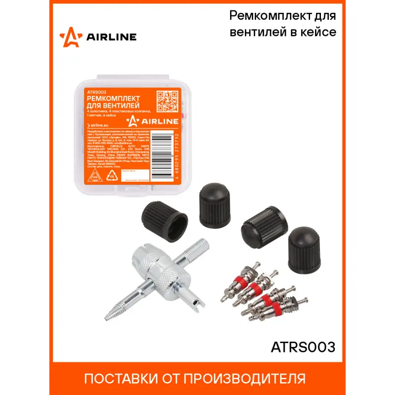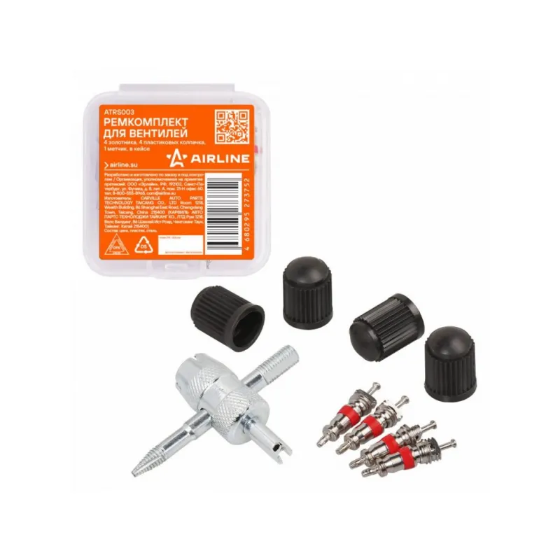 Ремкомплект для вентилей (4 золотника, 4 пласт.колп, 1 метчик) в кейсе Описание: Ремкомплект для вентилей (4 золотника, 4 колпачка на вентиль, метчик) в кейсе AIRLINE ATRS003 Сильные перепады температуры, химические реагенты, УФ-лучи и механическое воздействие являются частыми причинами выхода из строя золотника. Повреждение этого небольшого элемента может вызвать серьезные проблемы с управлением автомобилем. Благодаря ремкомплекту замену золотников несложно осуществить самостоятельно. Изготовлены из высококачественных материалов - цинк, пластик, сталь; Устойчивы к износу и коррозии; Удобны в использовании для профессионалов и любителей; Помимо автомобилей, ремонтный комплект подходит для мотоциклов, квадроциклов, прицепов, садовых тачек, велосипедов, снегоуборщиков, автомобилей, в числе которых: Alfa Romeo, Audi, BMW, Brilliance, BYD, Cadillac, Changan, Chery, Chevrolet, Chrysler, Citroen, Dacia, Daewoo, Daihatsu, Datsun, Dodge, FAW, Fiat, Ford, Foton, Geely, Genesis, GMC, Great Wall, Haval, Honda, Hummer, Hyundai, Infiniti, Jaguar, Jeep, Kia, LADA (ВАЗ), Land Rover, Lexus, Lifan, Lincoln, Mazda, Mercedes-Benz, MINI, Mitsubishi, Nissan, Opel, Peugeot, Pontiac, Porsche, Ravon, Renault, Rover, Saab, SEAT, Skoda, Smart, SsangYong, Subaru, Suzuki, Tesla, Toyota, Volkswagen, Volvo, ГАЗ, ЗАЗ, ЗИЛ, ИЖ, Москвич, ТагАЗ, УАЗ и другой техники. Товар официального производителя AIRLINE. Характеристики: Артикул: ATRS003 Тип золотника: Короткий Длина золотника, мм: 19 Материал золотника: Цинк Резьба колпачка: Vg5 Комплектация: Метчик - 1 шт Колпачок пластиковый - 4 шт Пластиковый кейс - 1 шт Золотник - 4 шт Гарантия: от 1 года.